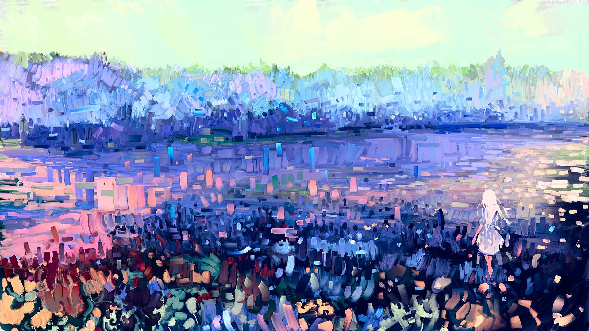 Edytor tapety: Dziewczyna nad rzeką w grafice