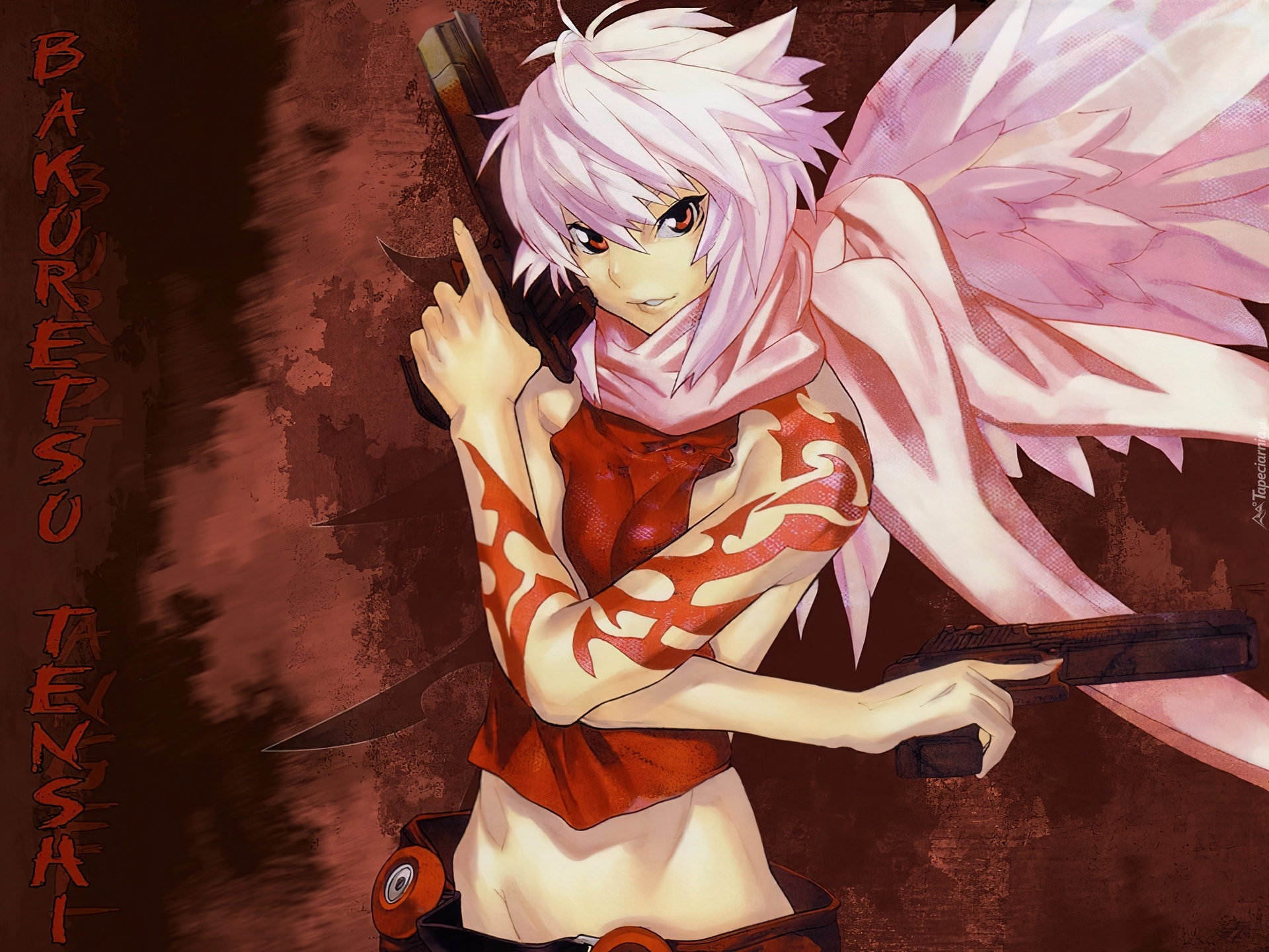 Edytor tapety: Bakuretsu Tenshi, napisy, kobieta, skrzydła