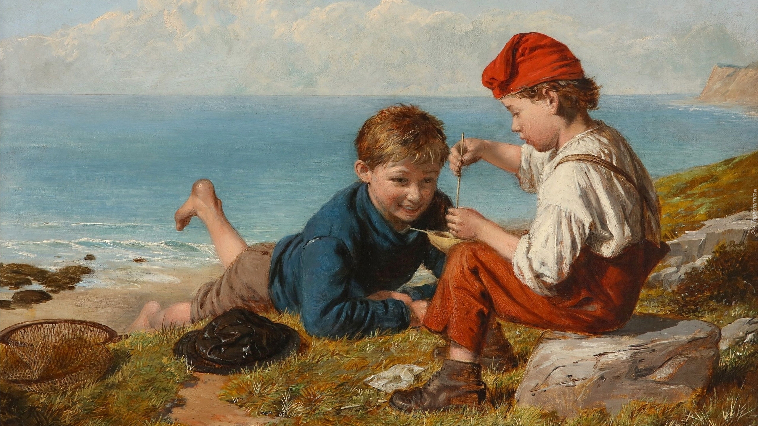 Edytor tapety: Dwójka chłopców nad morzem na obrazie Williama Hemsleya