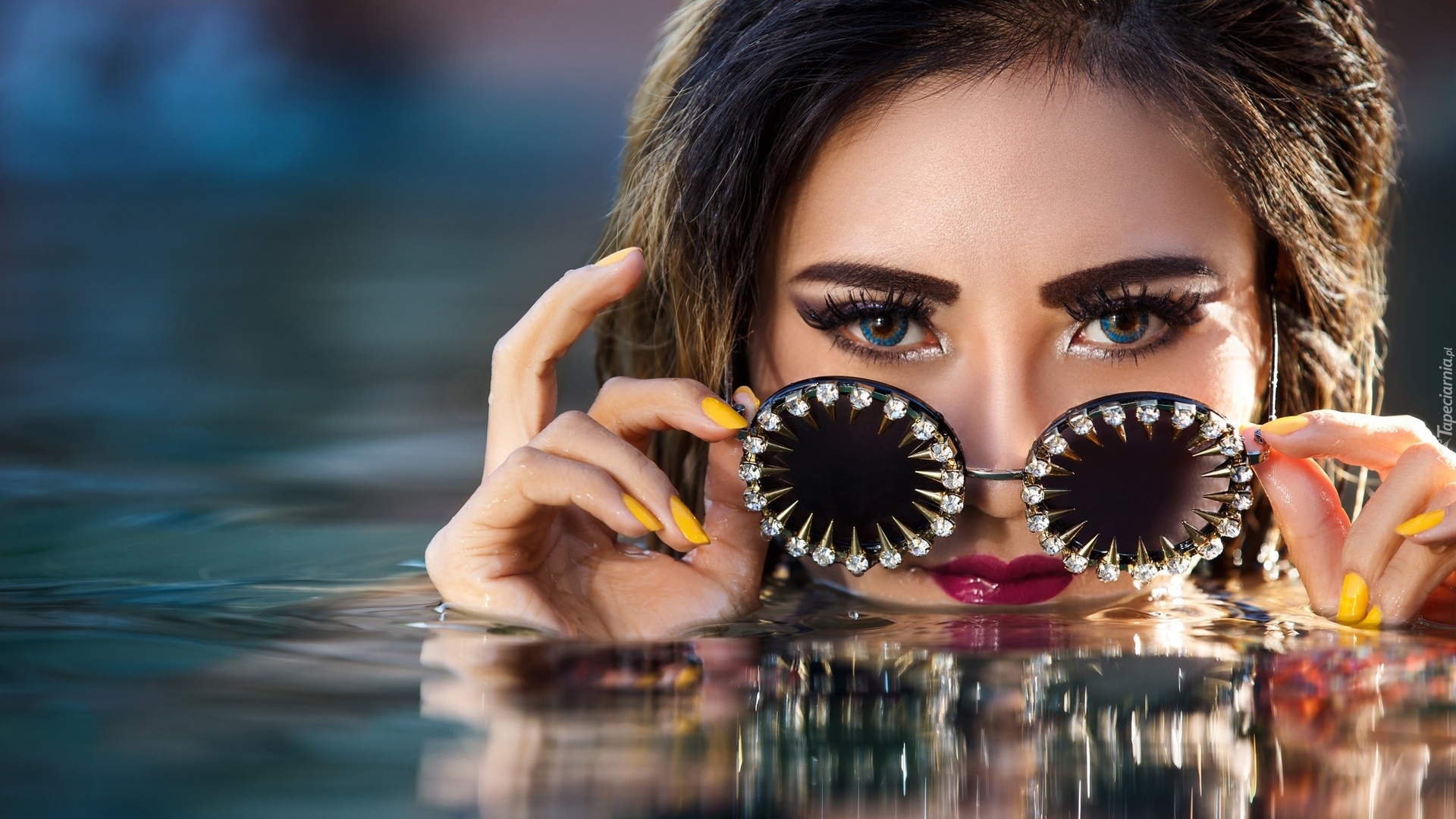 Edytor tapety: Twarz kobiety z okularami w wodzie