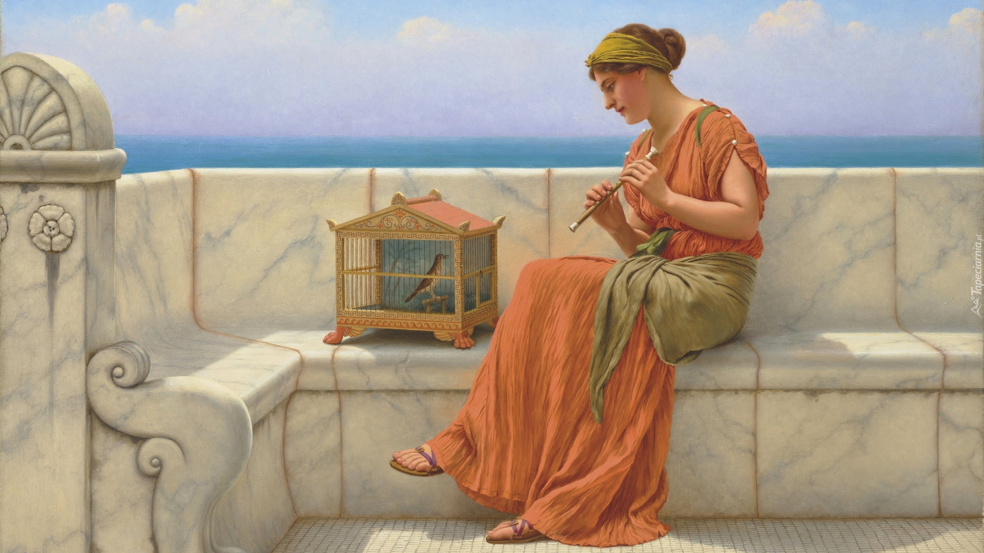 Edytor tapety: Kobieta z fletem na obrazie Johna Williama Godwarda
