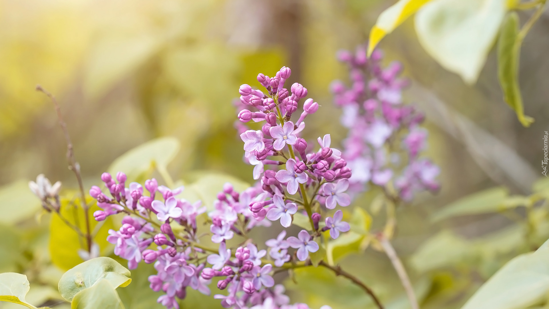 Edytor tapety: Gałązki fioletowego bzu na rozmytym tle