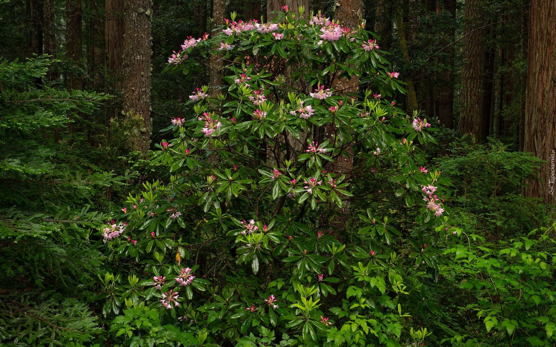 Edytor tapety: Różanecznik pod drzewem w lesie