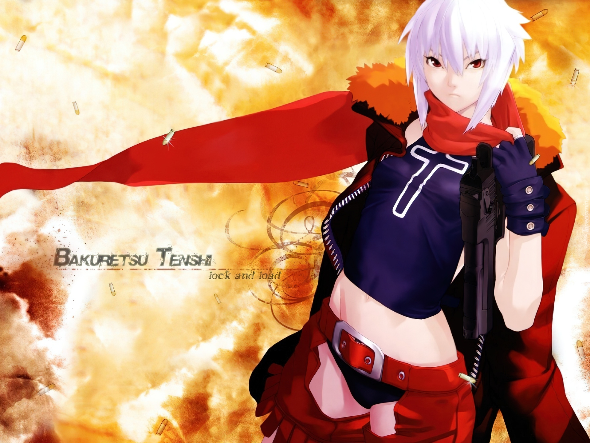 Edytor tapety: Bakuretsu Tenshi, napis, naboje, kobieta