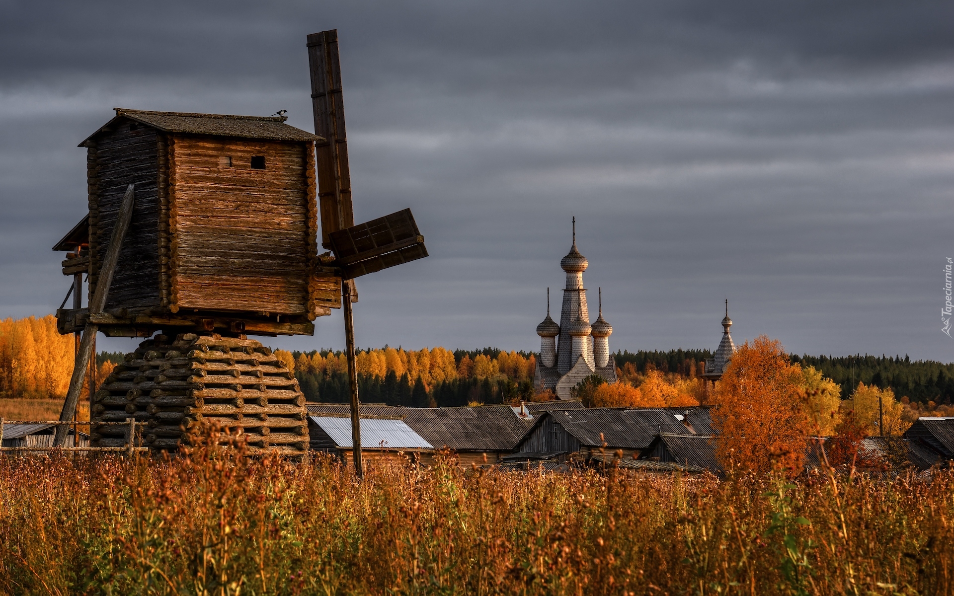 Edytor tapety: Wiatrak i cerkiew we wsi Kimzha