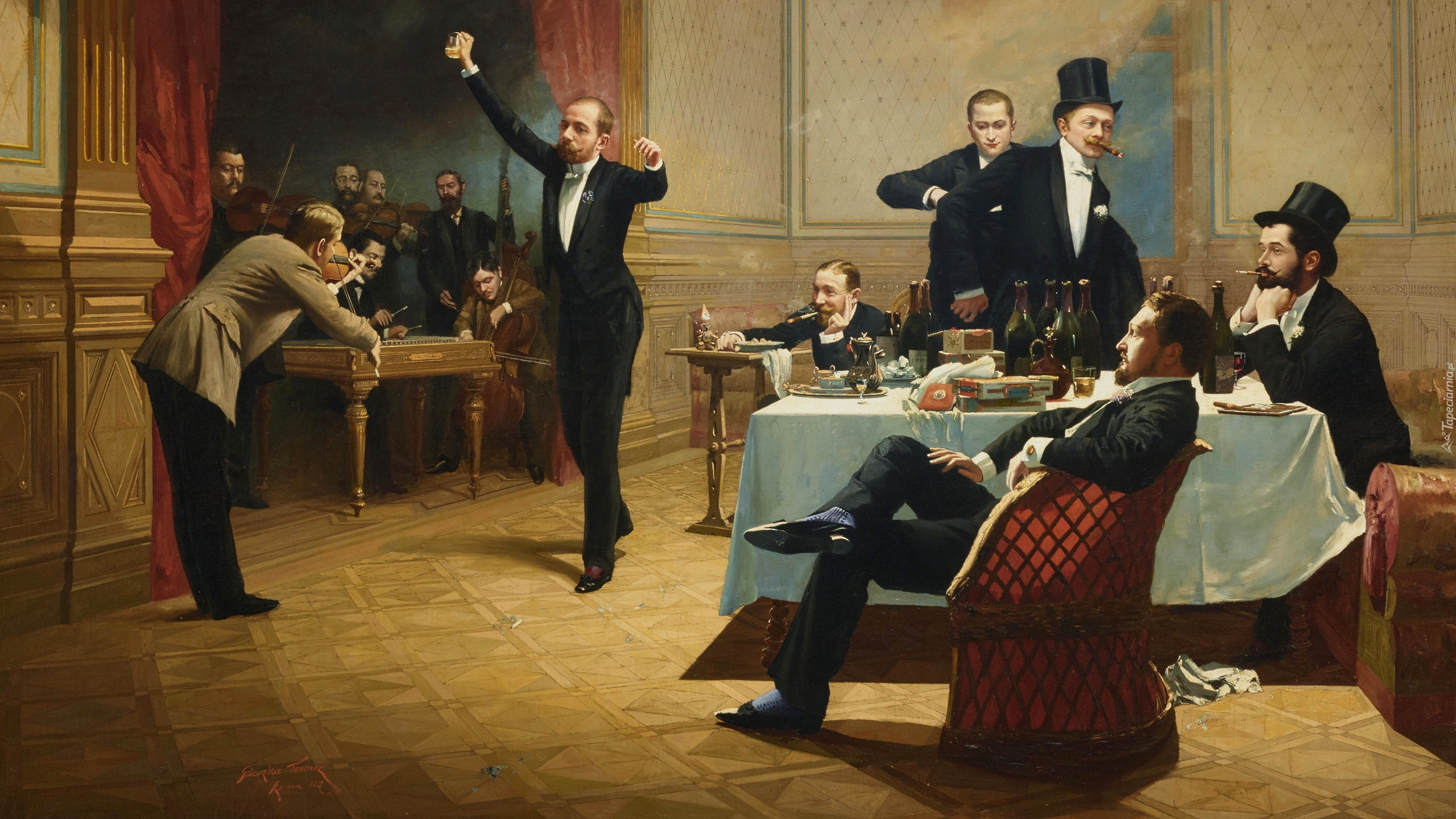 Edytor tapety: Spotkanie mężczyzn przy muzyce na obrazie Ferenca Paczki