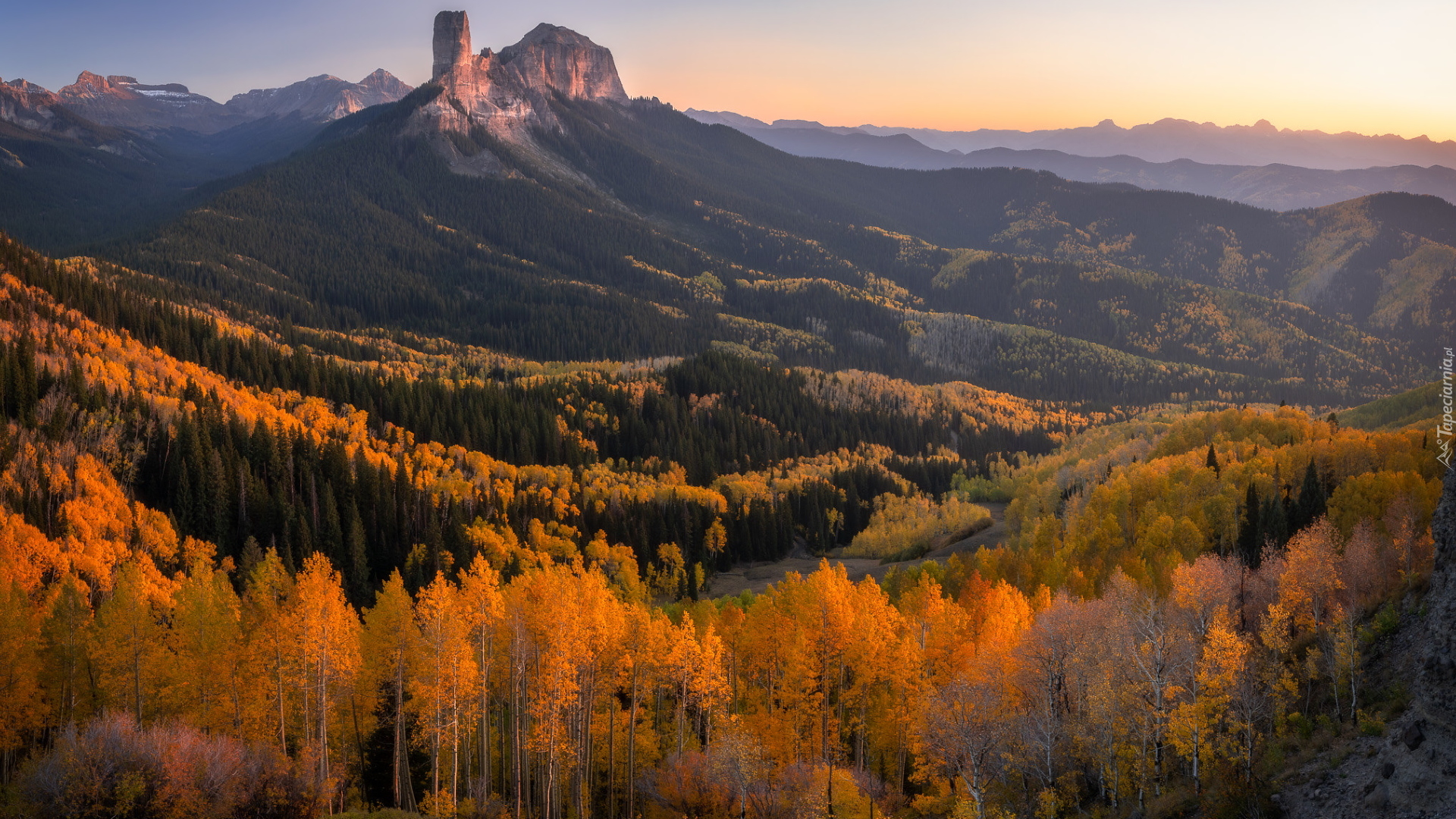 Edytor tapety: Widok na górę Chimney Mountain w Stanie Kolorado
