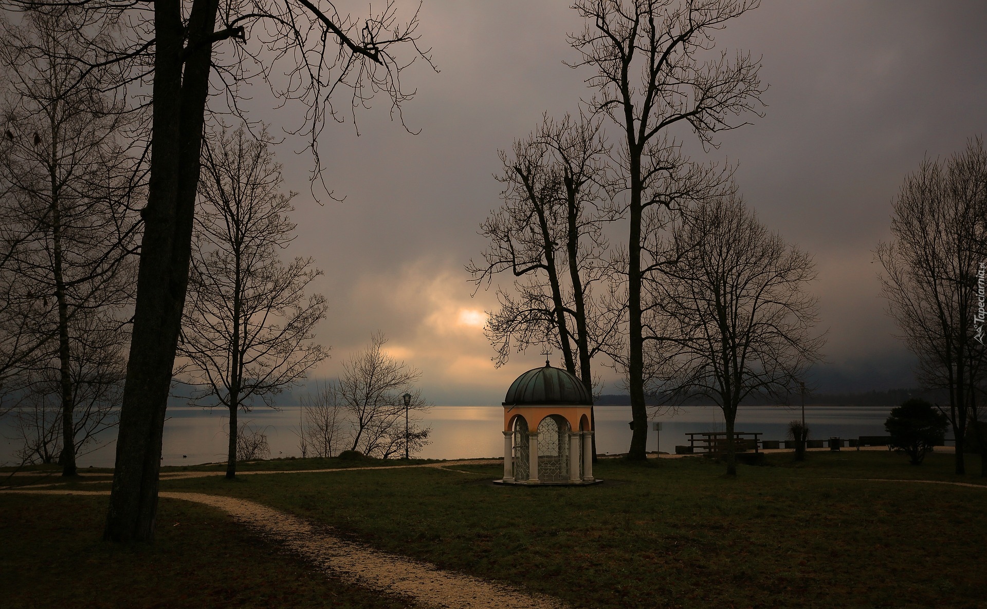 Edytor tapety: Altana i bezlistne drzewa nad jeziorem