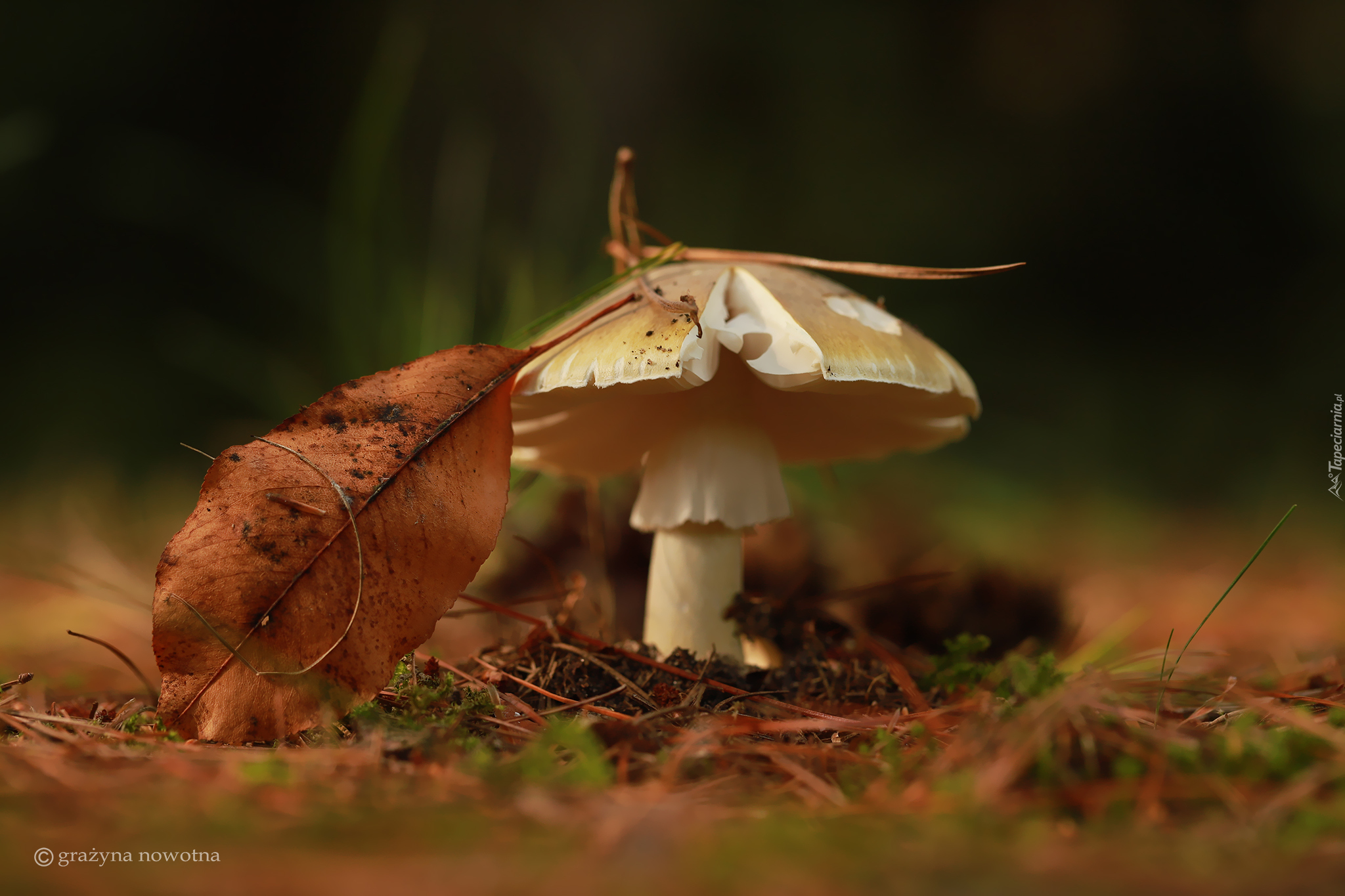 Edytor tapety: Jesienny liść na nadgryzionym grzybie