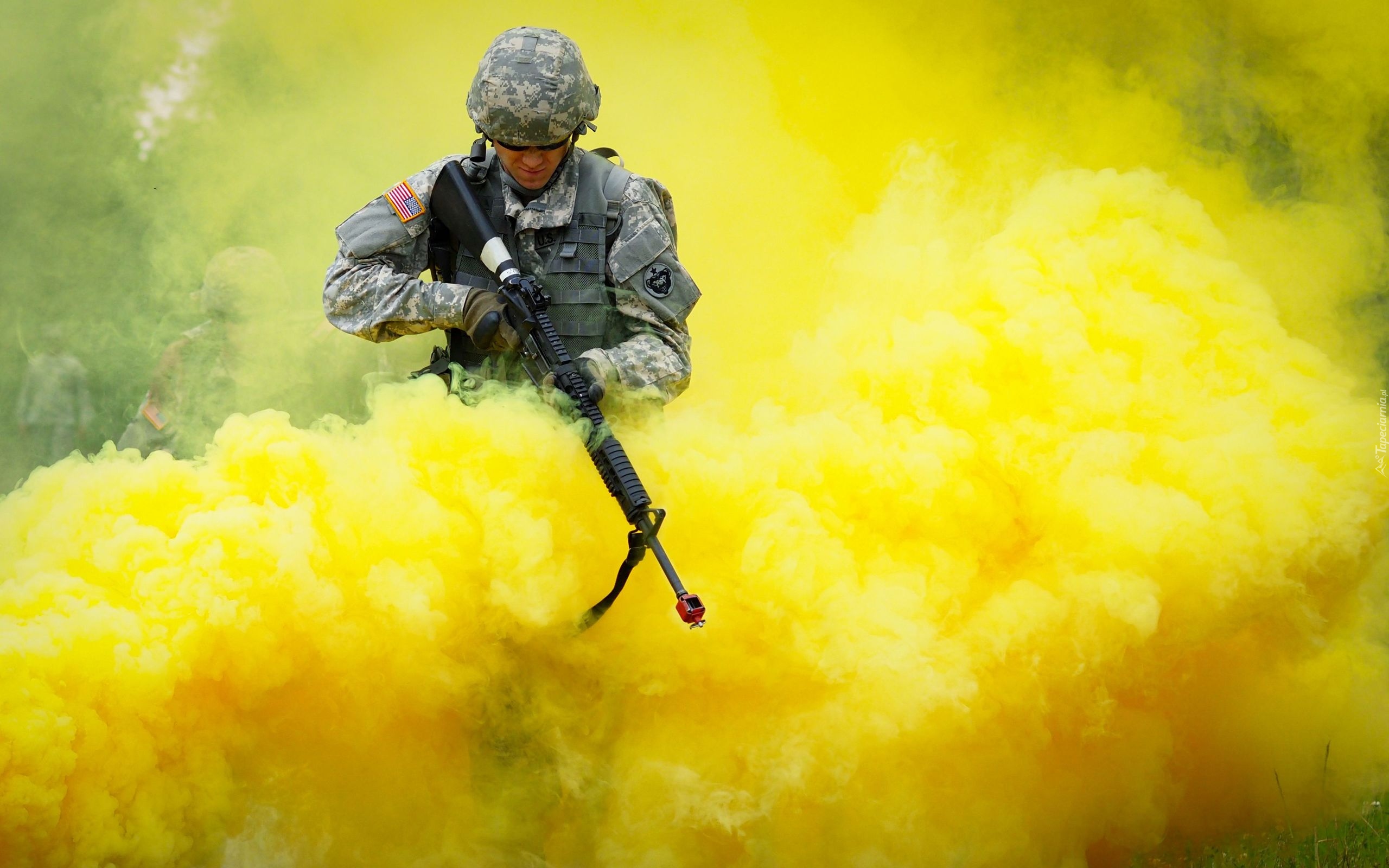 Edytor tapety: Żołnierz z bronią w zasłonie dymnej