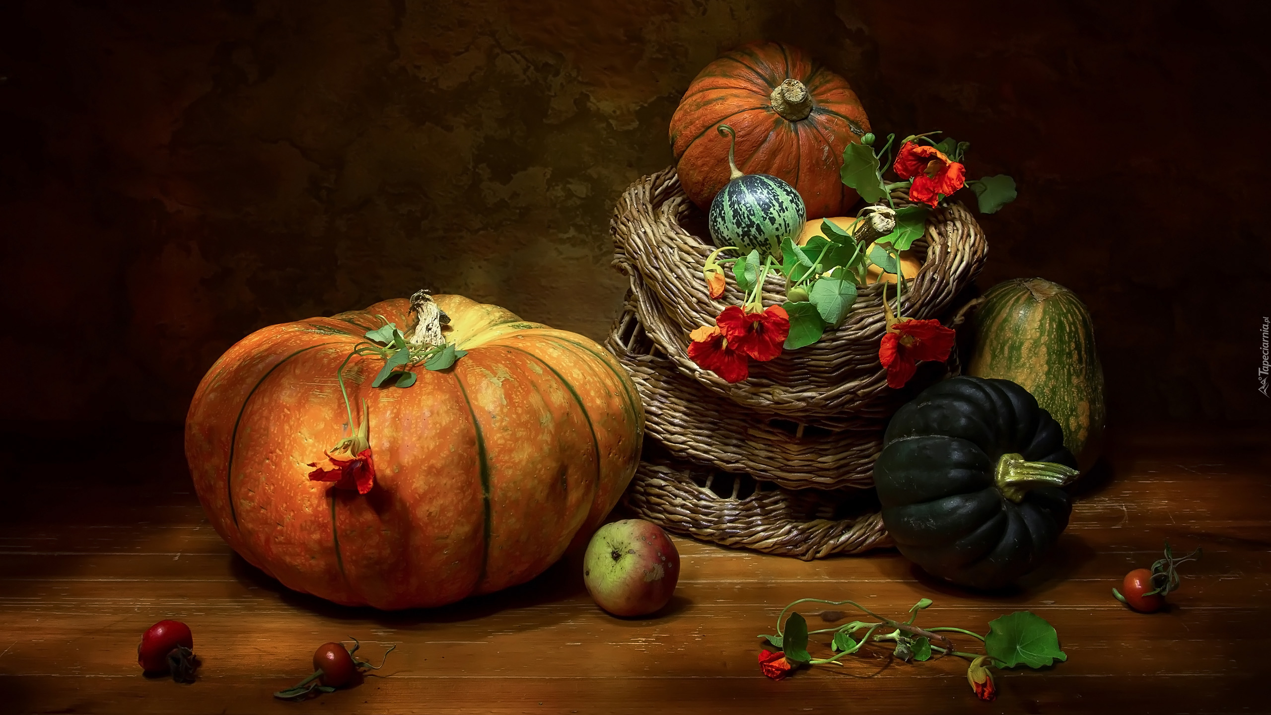Edytor tapety: Dynie w koszyku i obok