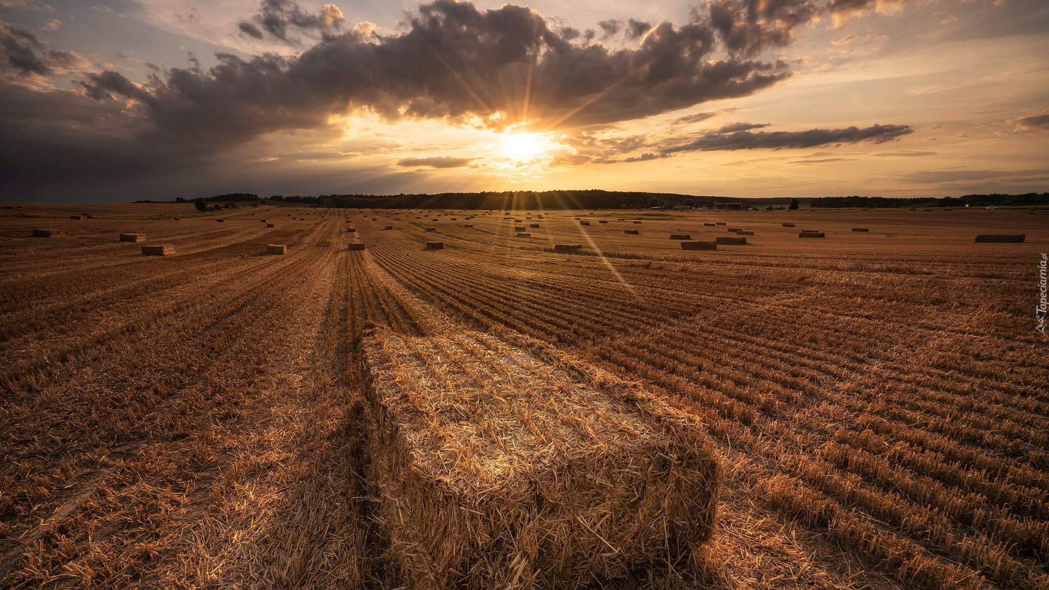 Edytor tapety: Bele słomy na ściernisku w słonecznym blasku