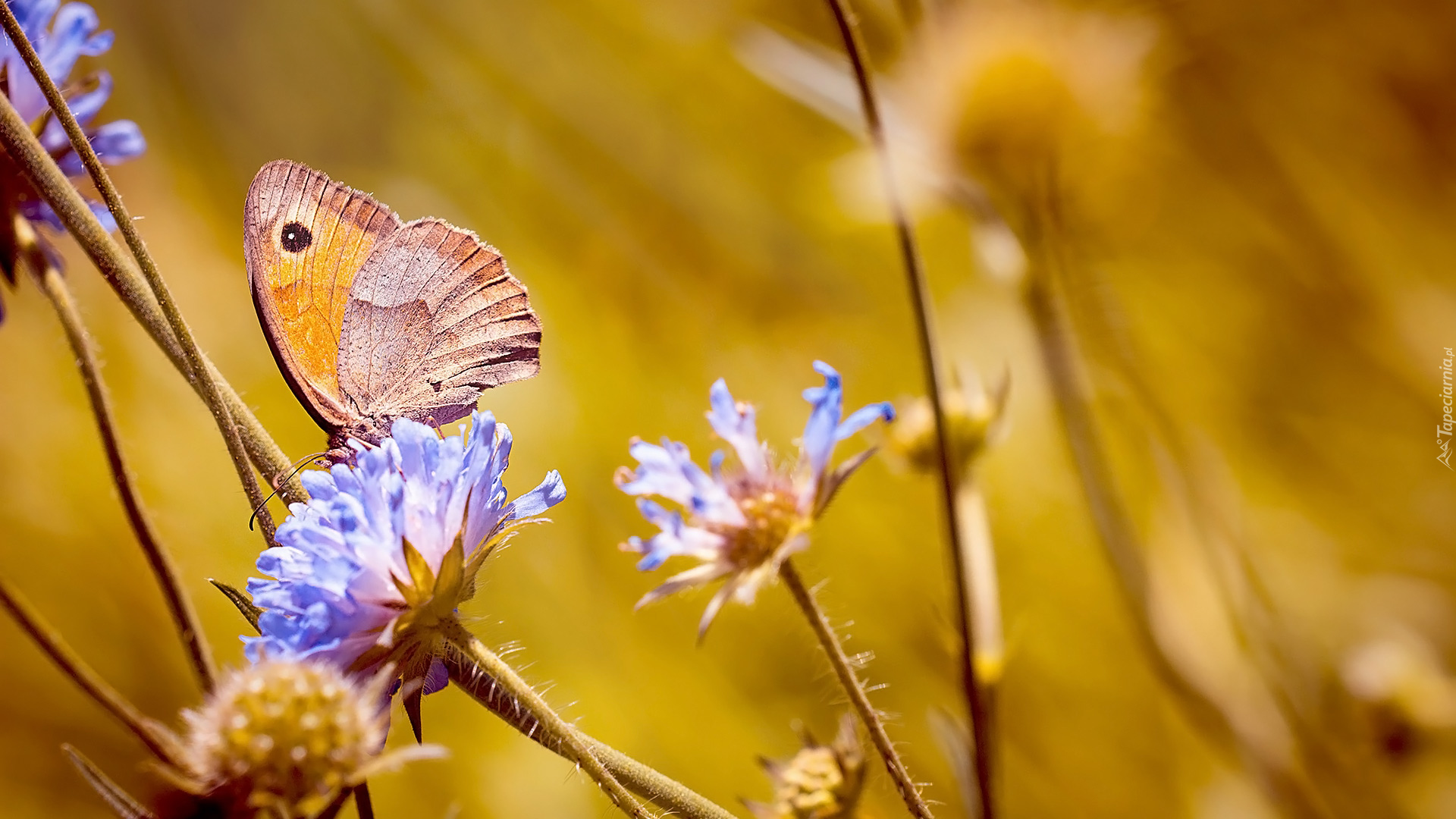 Edytor tapety: Strzępotek ruczajnik na niebieskim kwiatku
