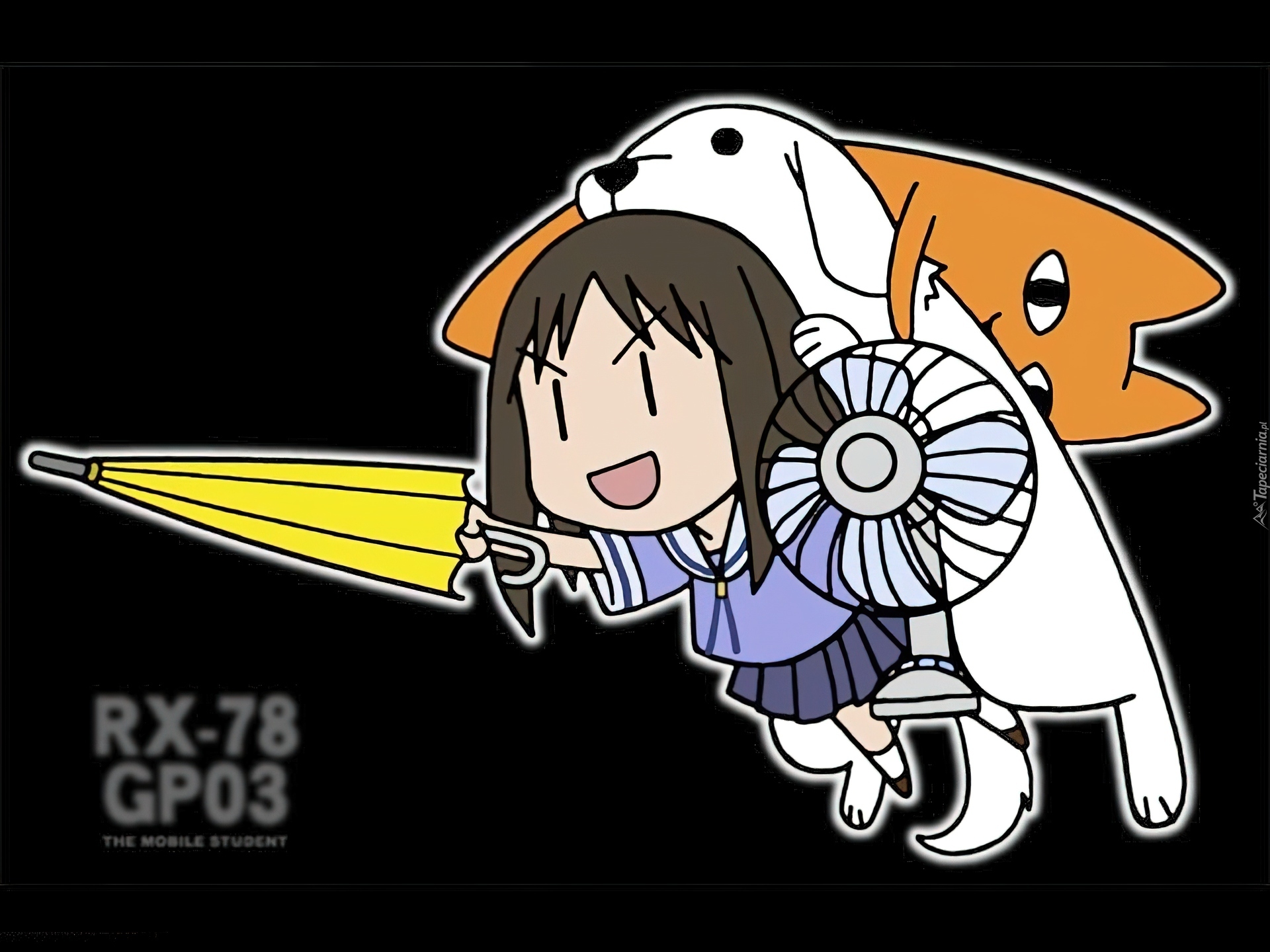 Edytor tapety: Azumanga Daioh, pies, kot, dziewczyna, Parasolka