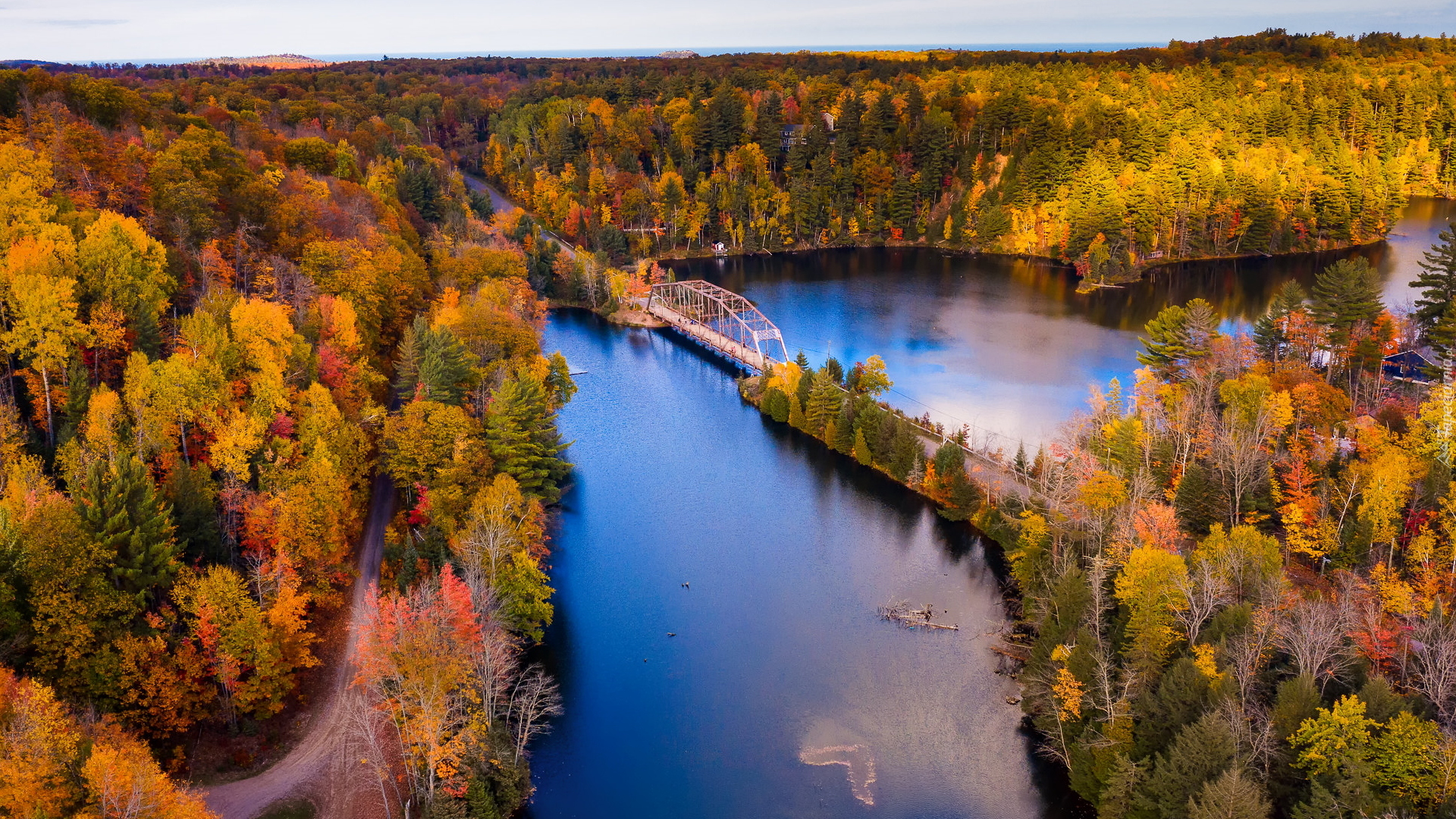Edytor tapety: Rzeka Dead River otoczona jesiennymi lasami