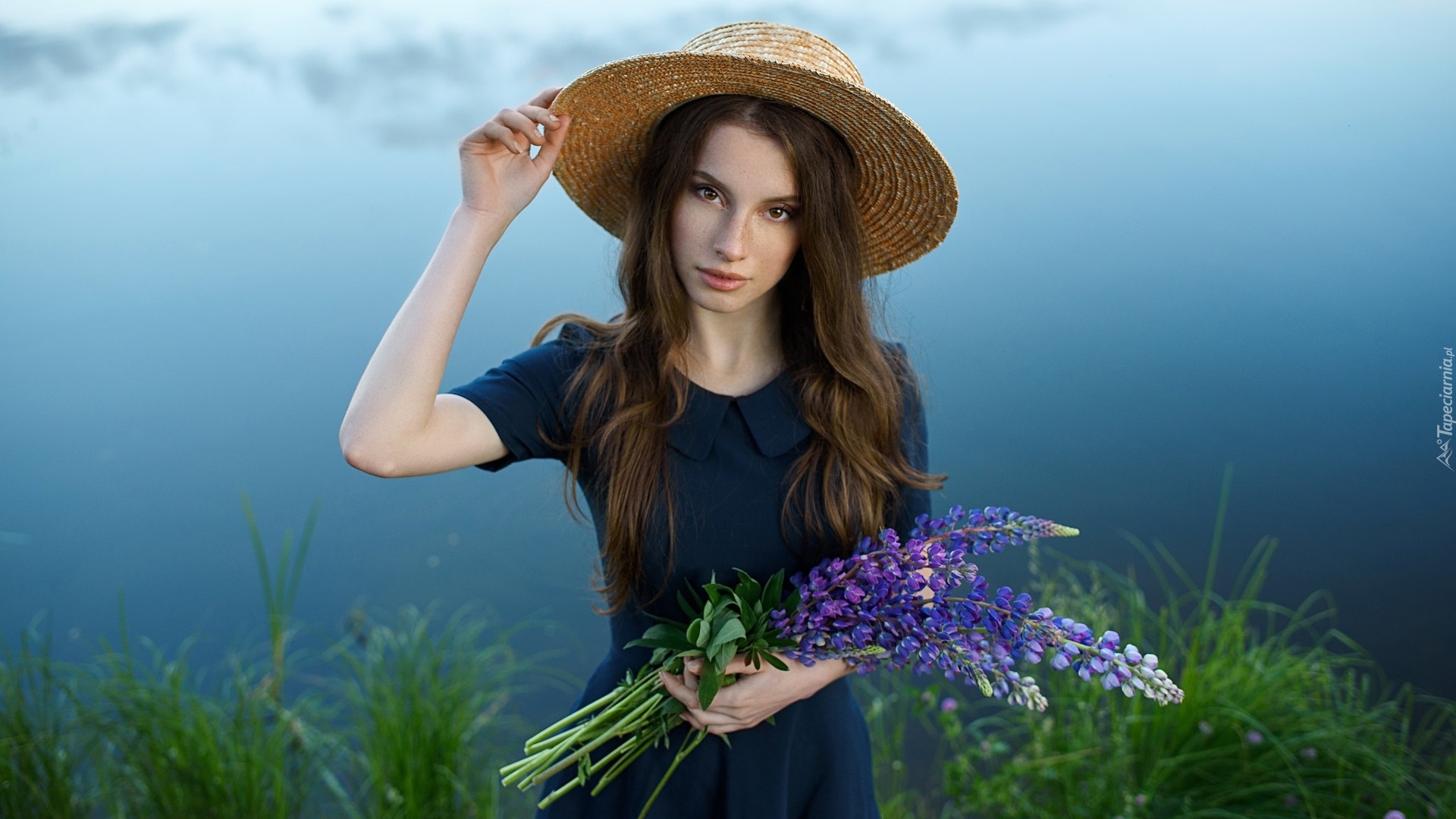 Edytor tapety: Dziewczyna z kwiatami łubinu