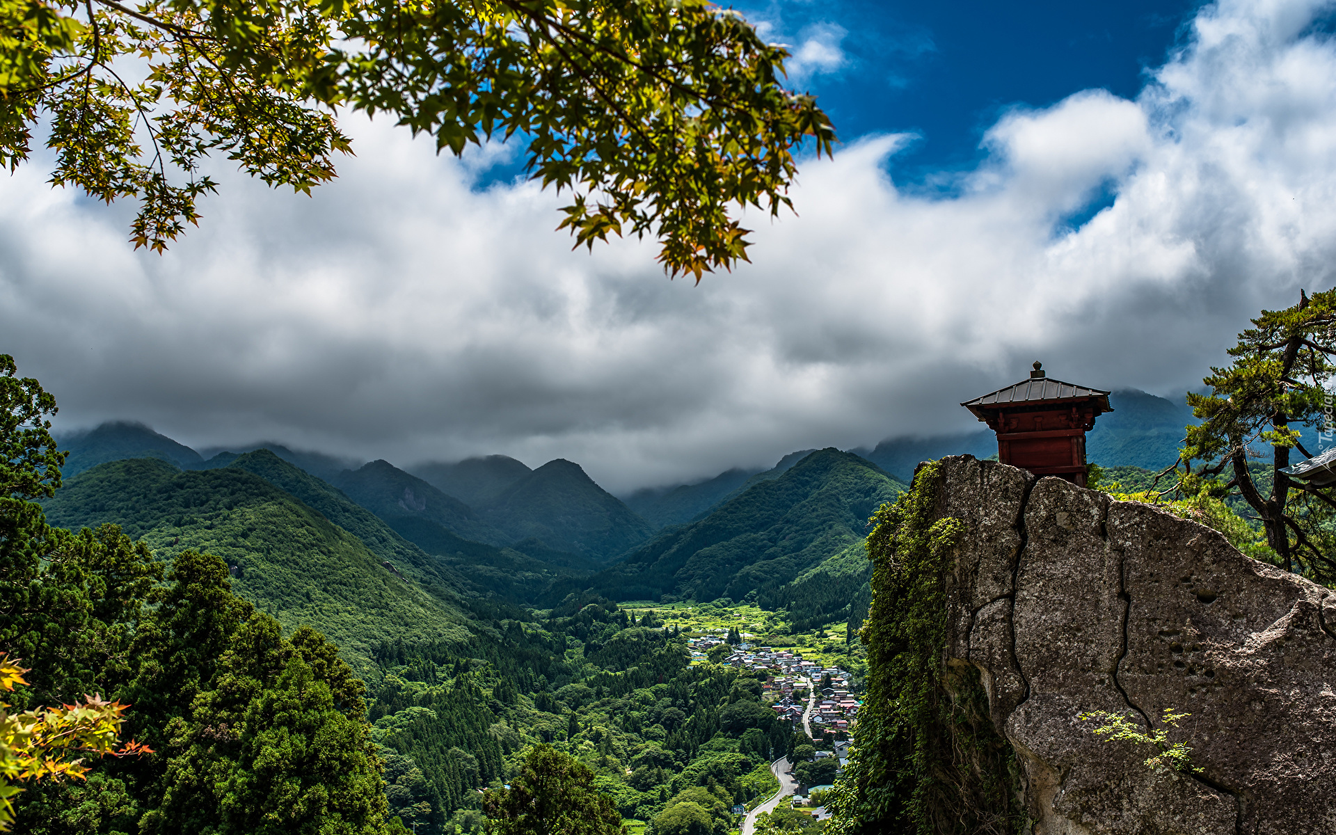 Edytor tapety: Widok na górską zieloną dolinę