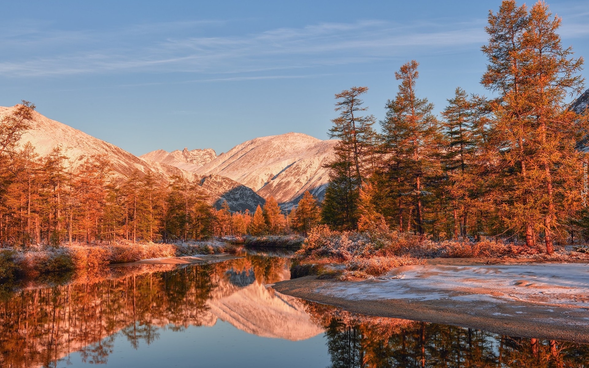 Edytor tapety: Rzeka z widokiem na jesienne drzewa w górach