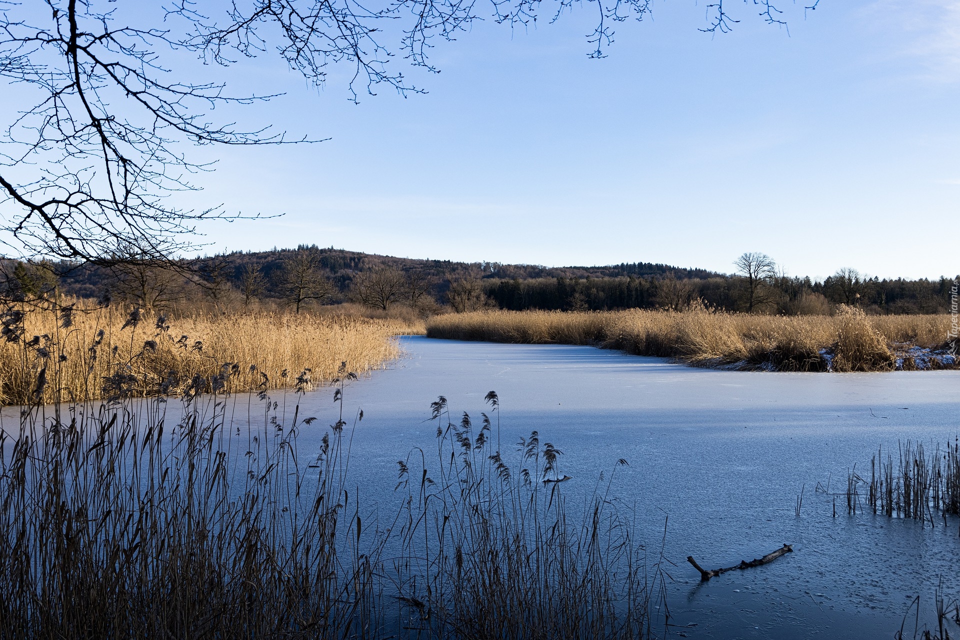 Edytor tapety: Szuwary na zamarzającym jeziorze