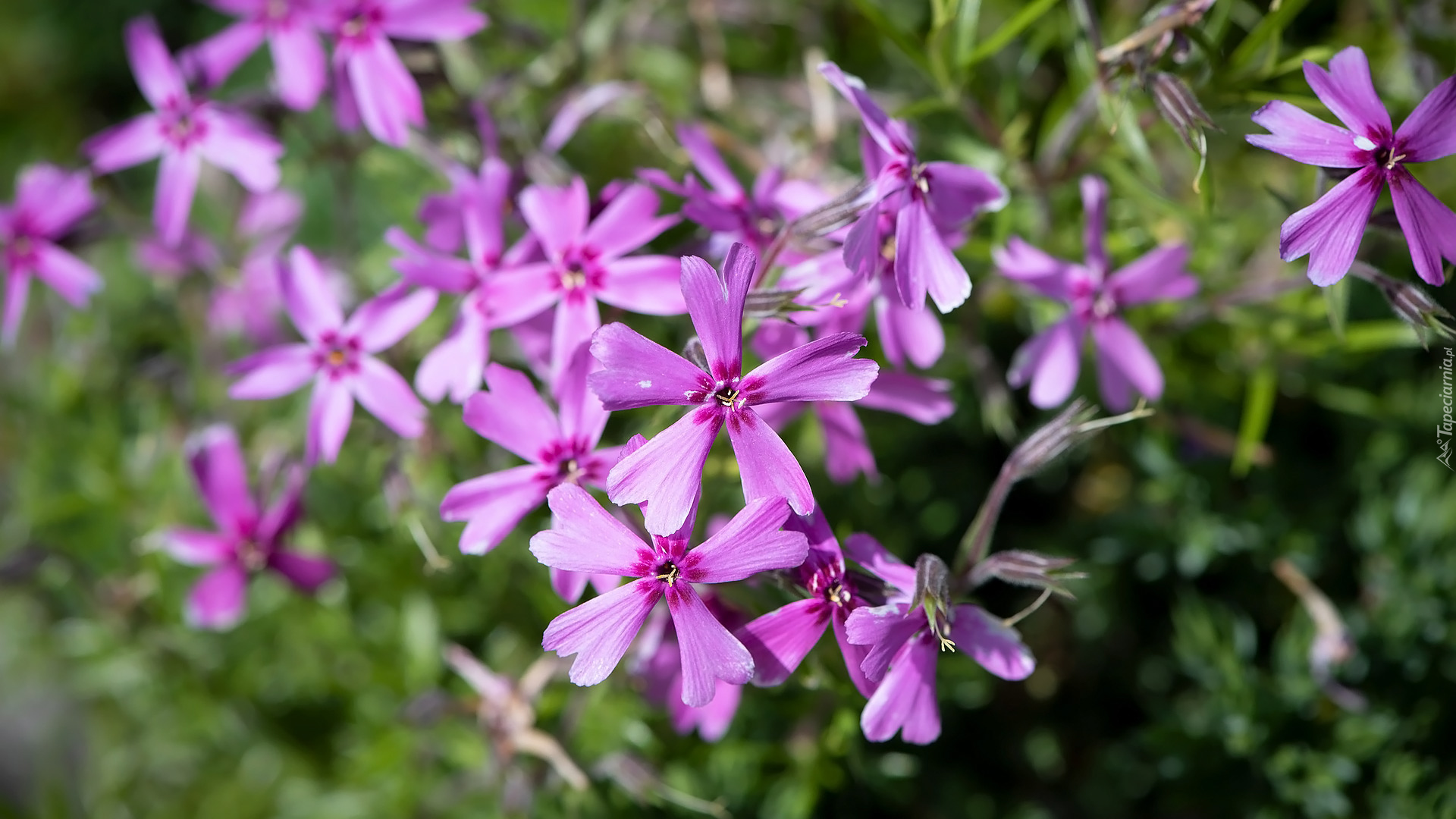 Edytor tapety: Fioletowe kwiatki w słońcu
