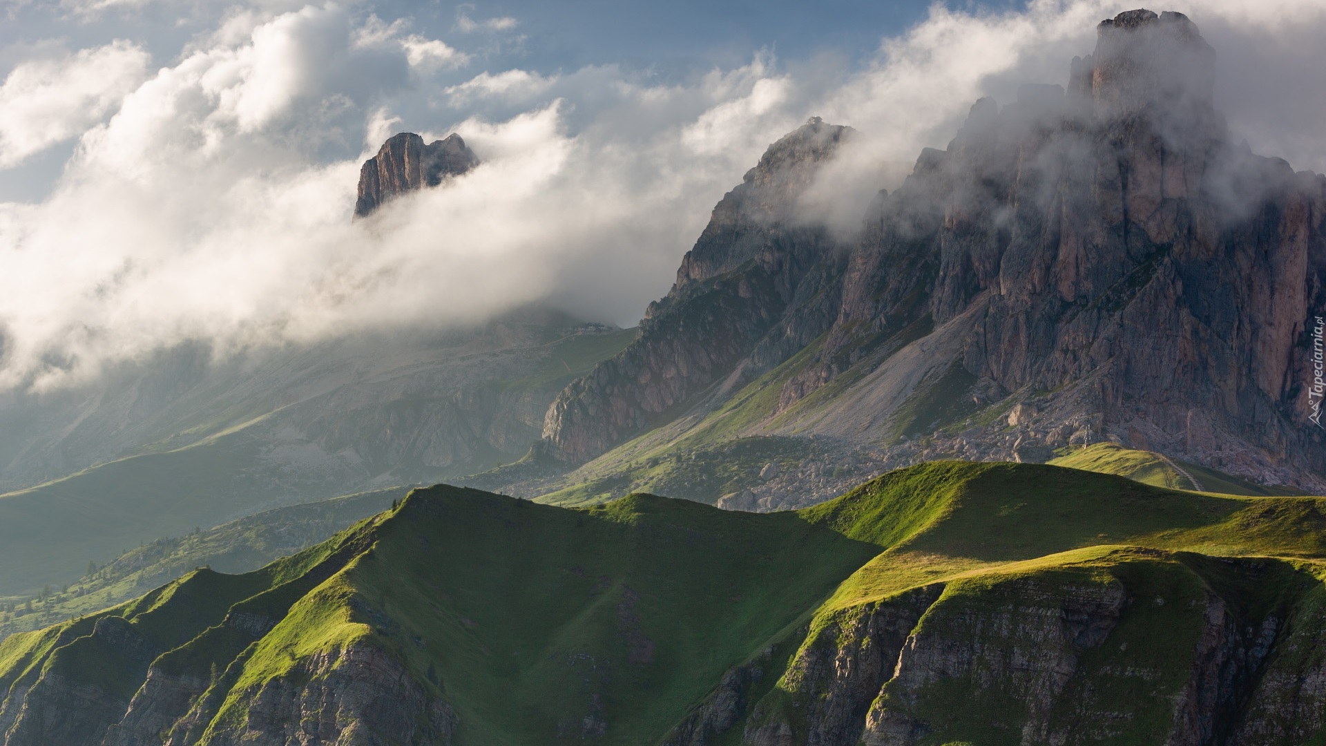 Edytor tapety: Mgła nad skalistymi górami