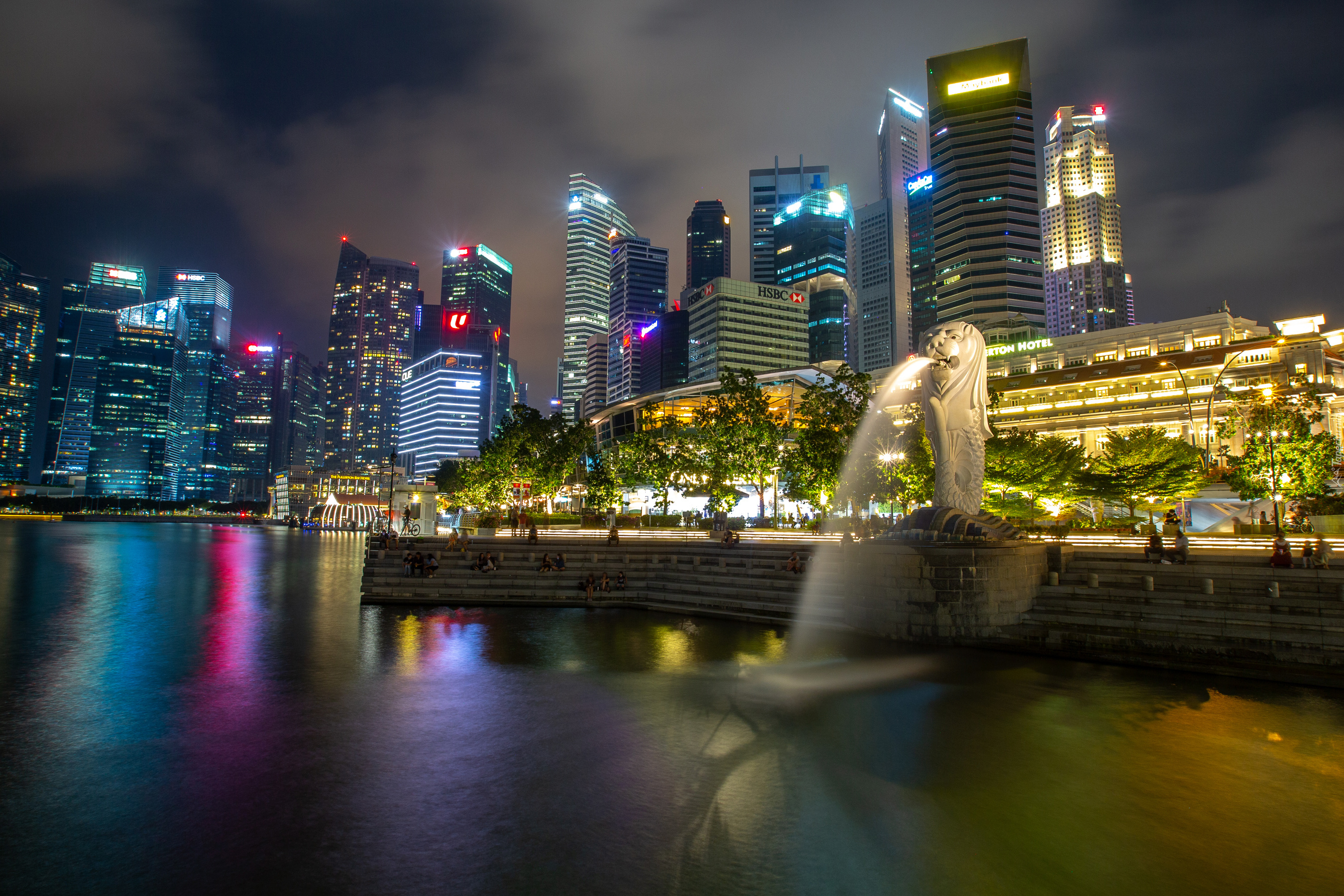 Edytor tapety: Wieżowce i fontanna w Singapurze