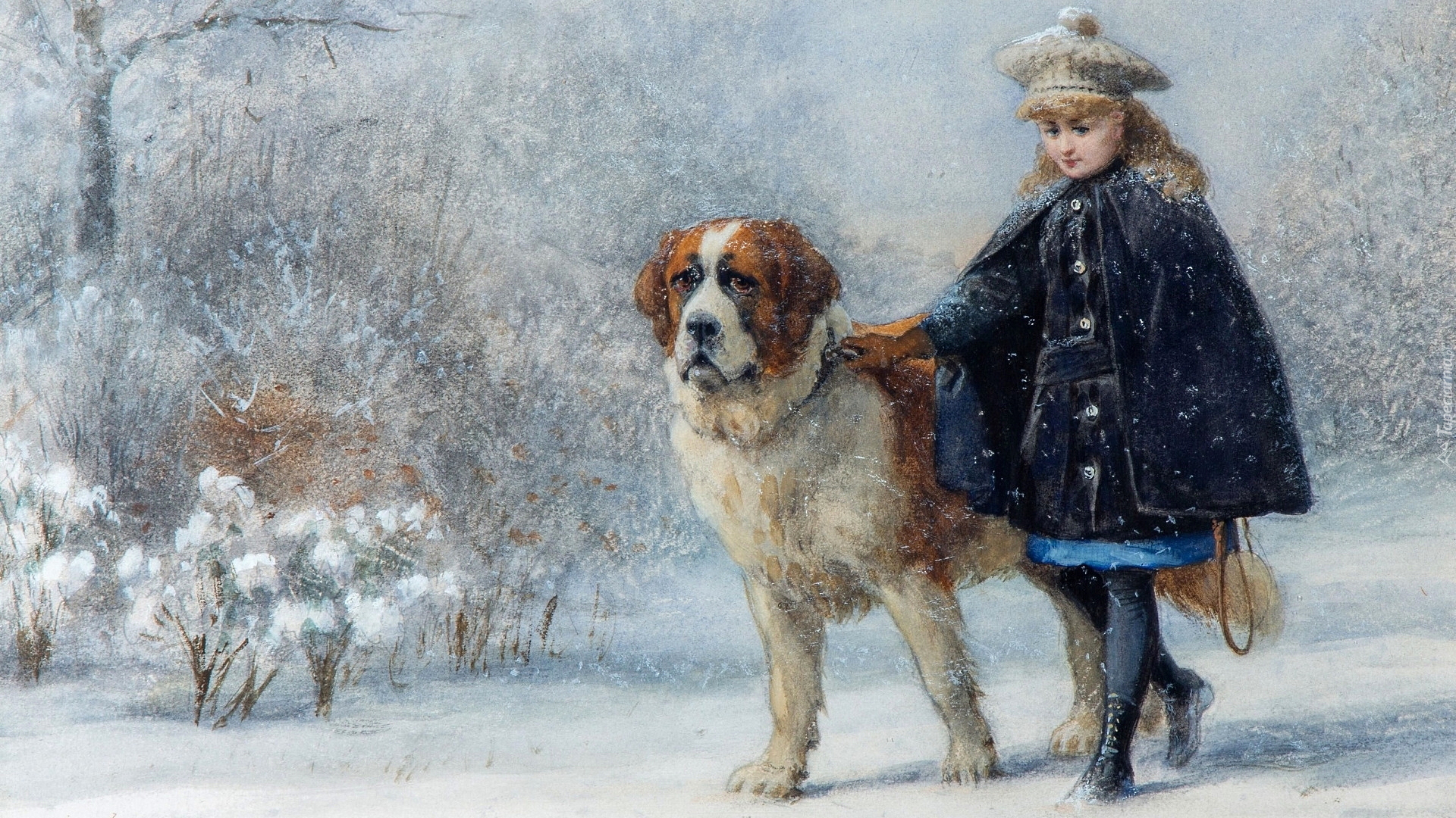 Edytor tapety: Dziewczynka z bernardynem na spacerze