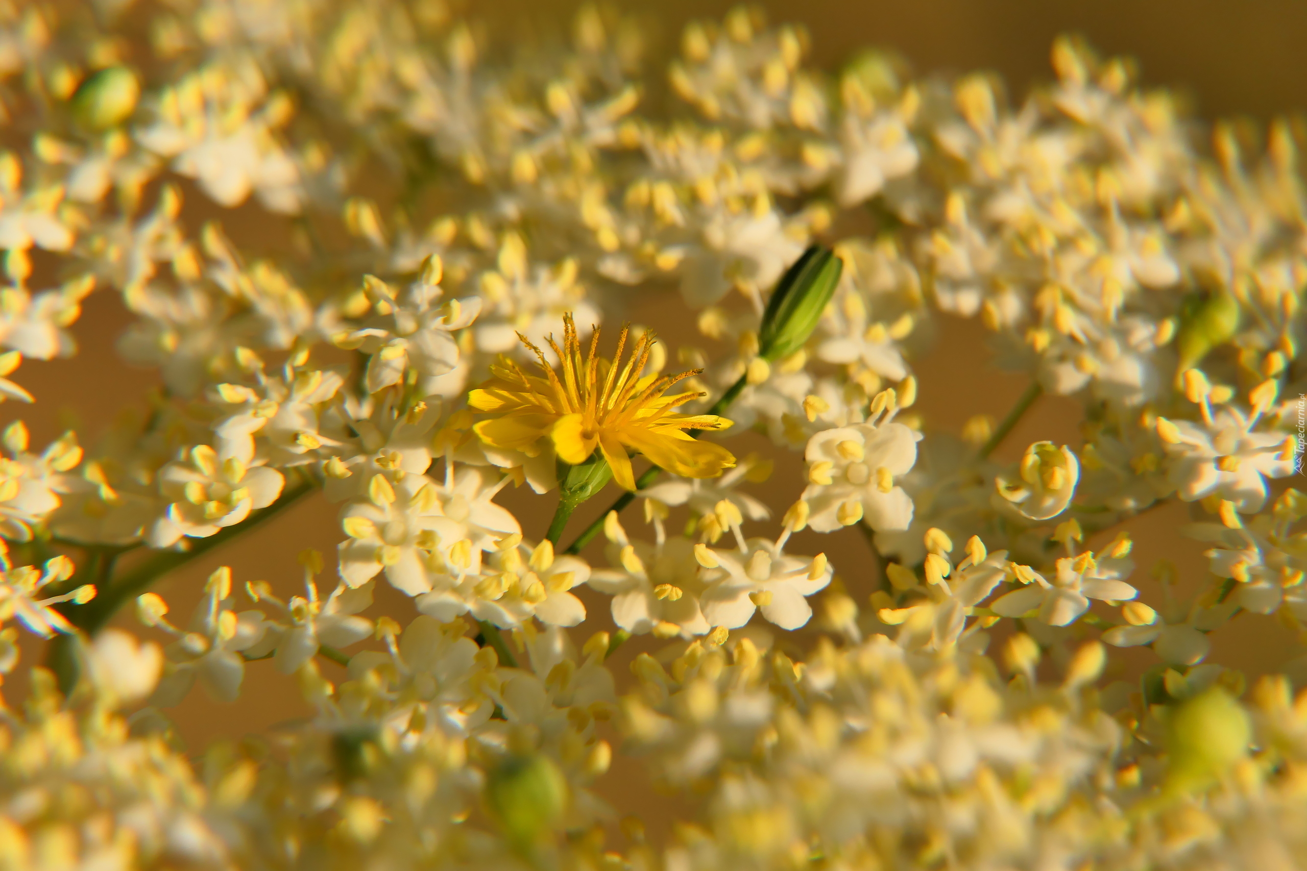 Edytor tapety: Rozświetlone słońcem gałązki z białymi kwiatami