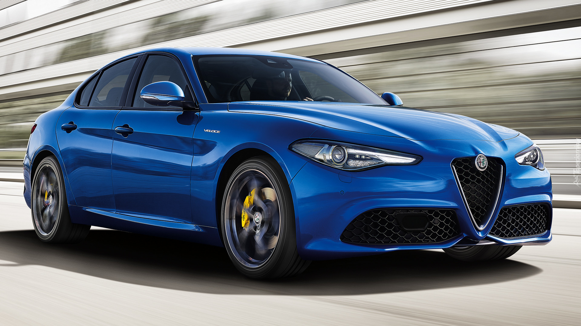 Edytor tapety: Niebieska Alfa Romeo Giulia