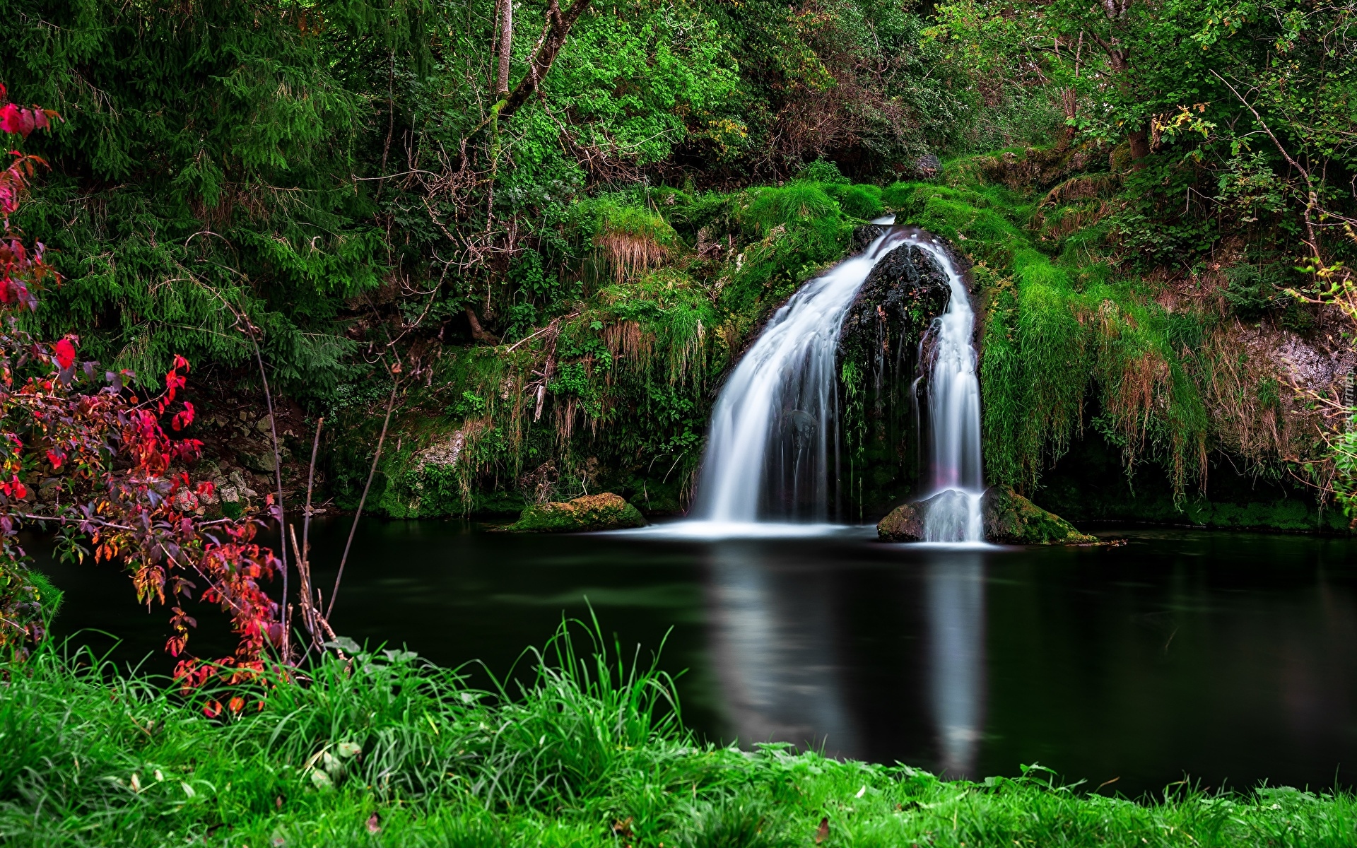 Edytor tapety: Mały wodospad na omszałej skale