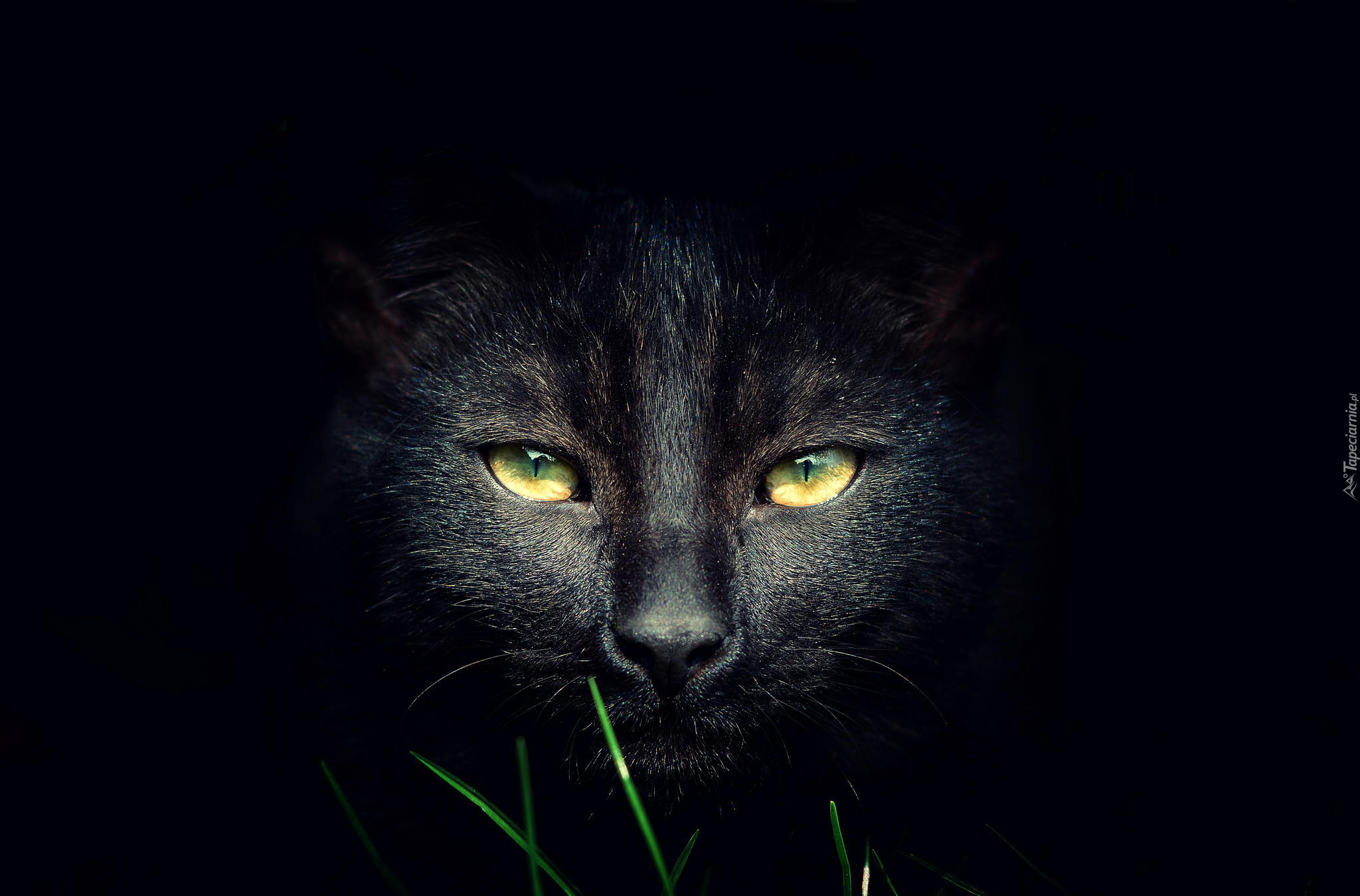 Edytor tapety: Mordka żółtookiego czarnego kota