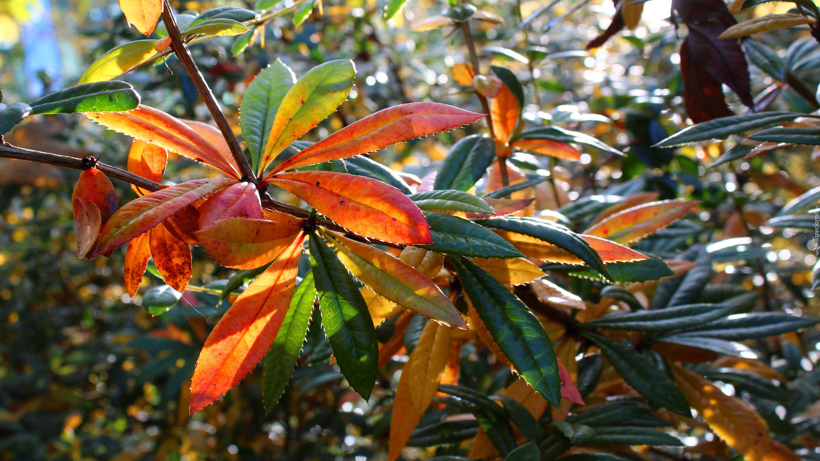 Edytor tapety: Kolorowe liście na gałązce w słońcu