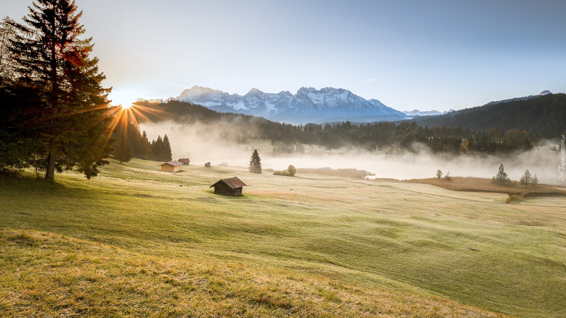 Edytor tapety: Mgła nad jeziorem Geroldsee w górach Karwendel