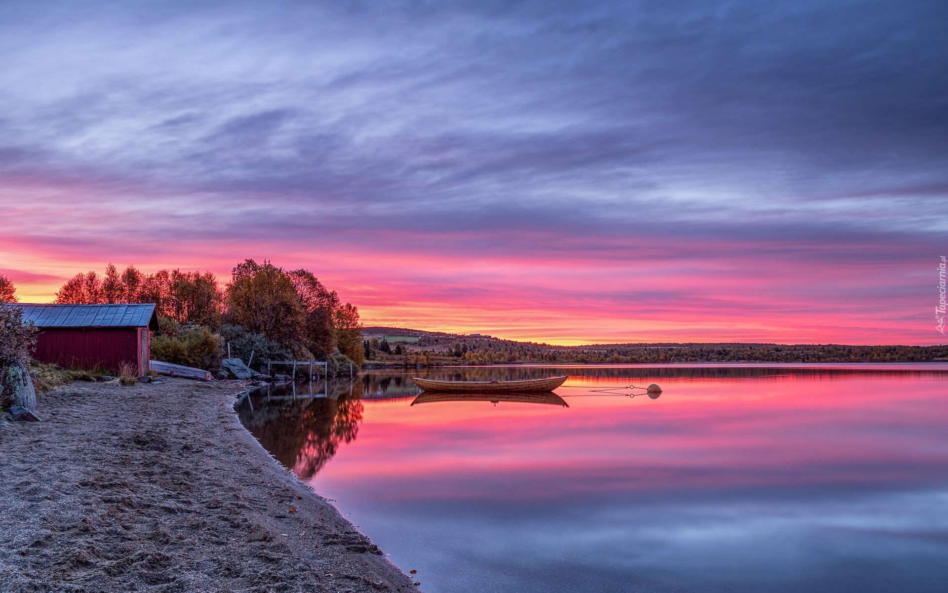 Edytor tapety: Różowe niebo nad jeziorem