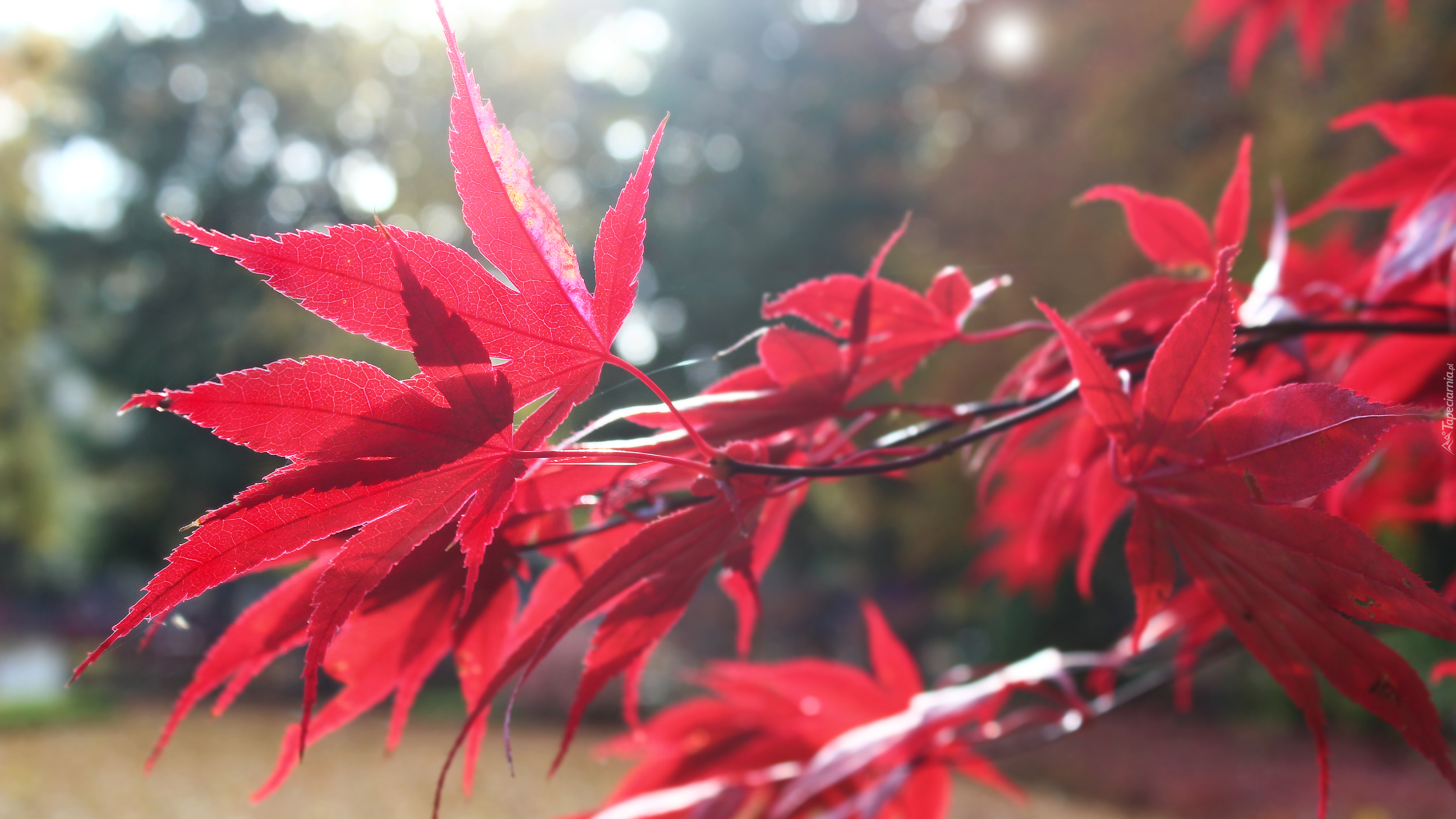 Edytor tapety: Czerwone liście klonu na rozmytym tle