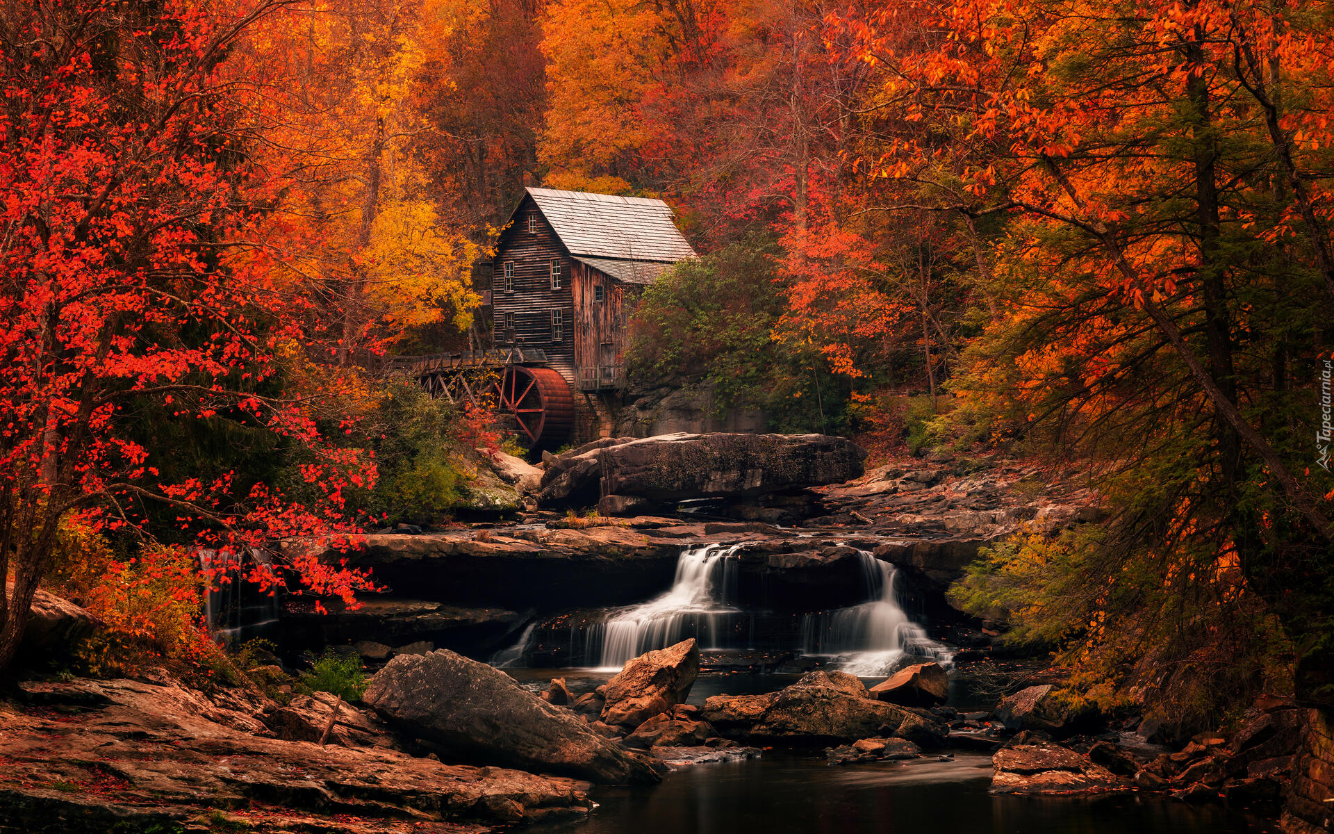 Edytor tapety: Młyn Glade Creek Grist Mill w jesiennym lesie