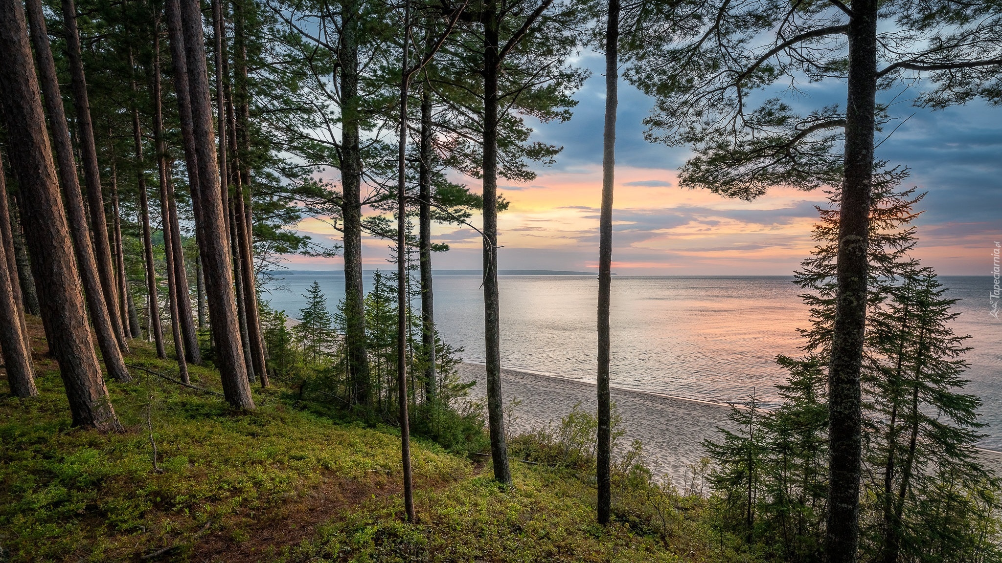 Edytor tapety: Las sosnowy przy morskiej plaży