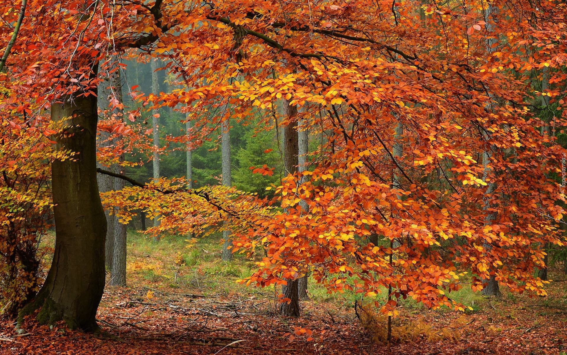 Edytor tapety: Pożółkłe jesienne drzewa w lesie