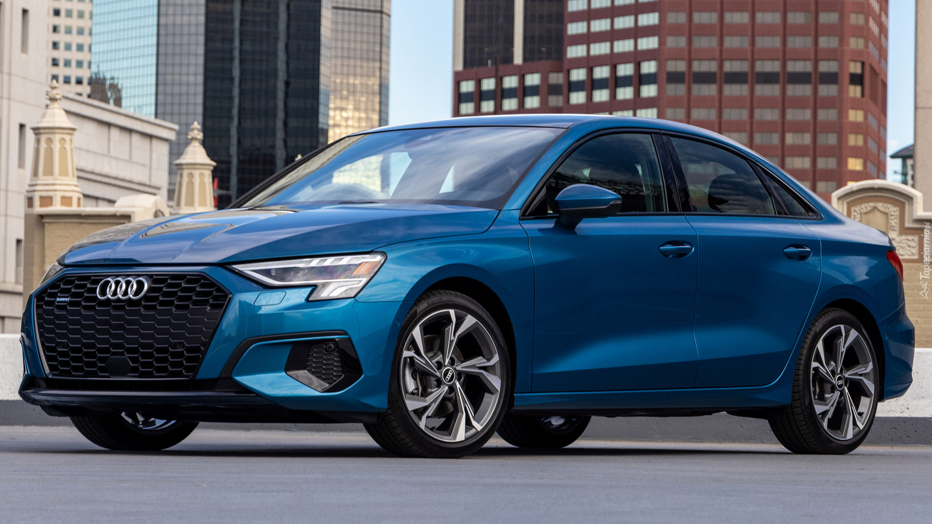 Edytor tapety: Niebieskie Audi A3 bokiem