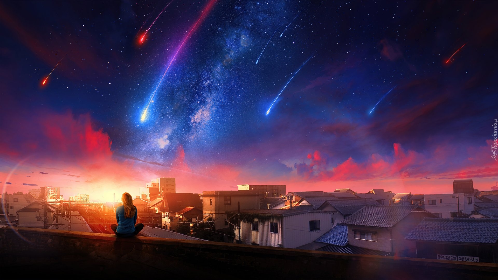 Edytor tapety: Dziewczyna oglądająca spadające gwiazdy