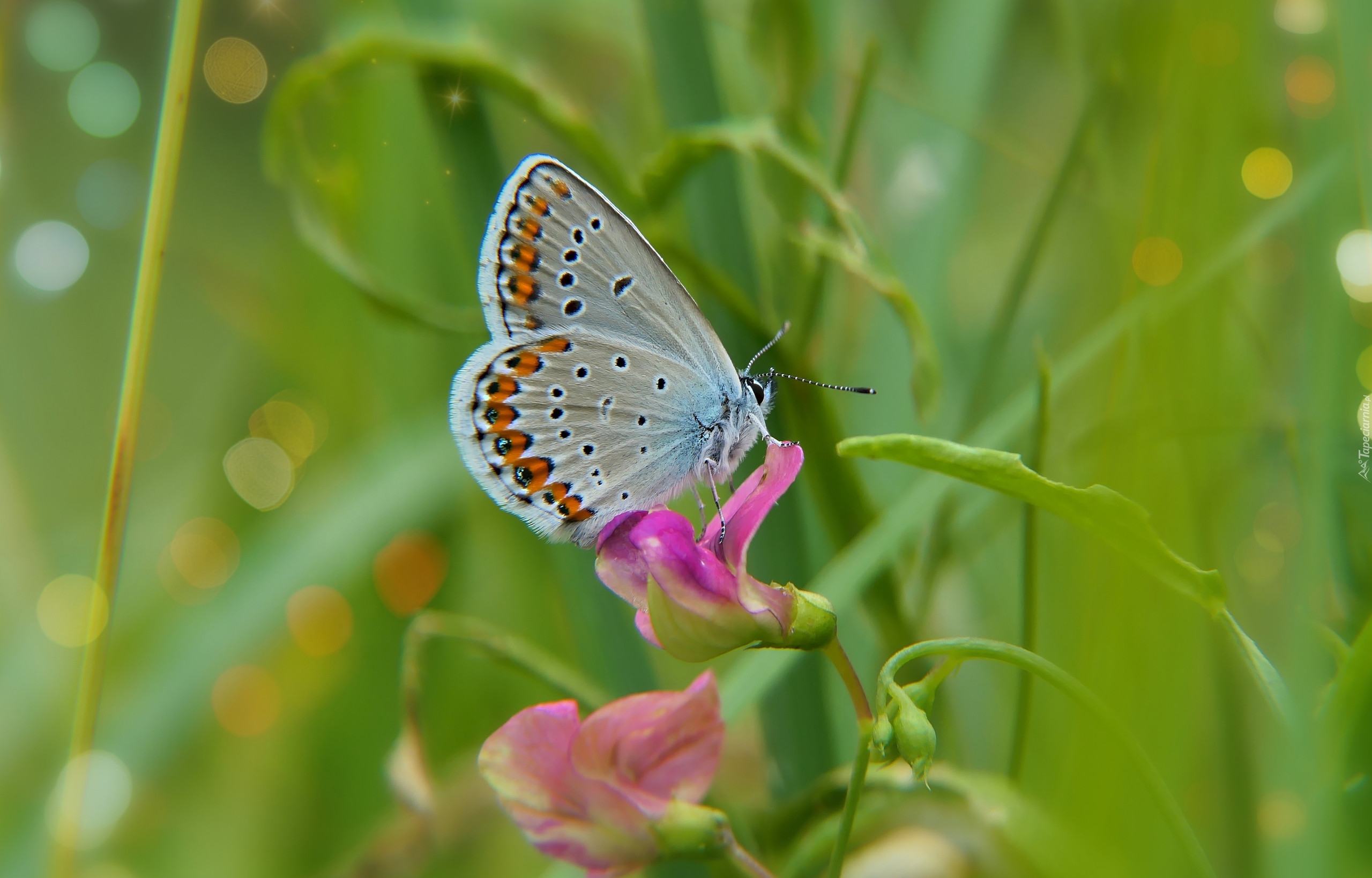 Edytor tapety: Modraszek ikar na różowym kwiatku