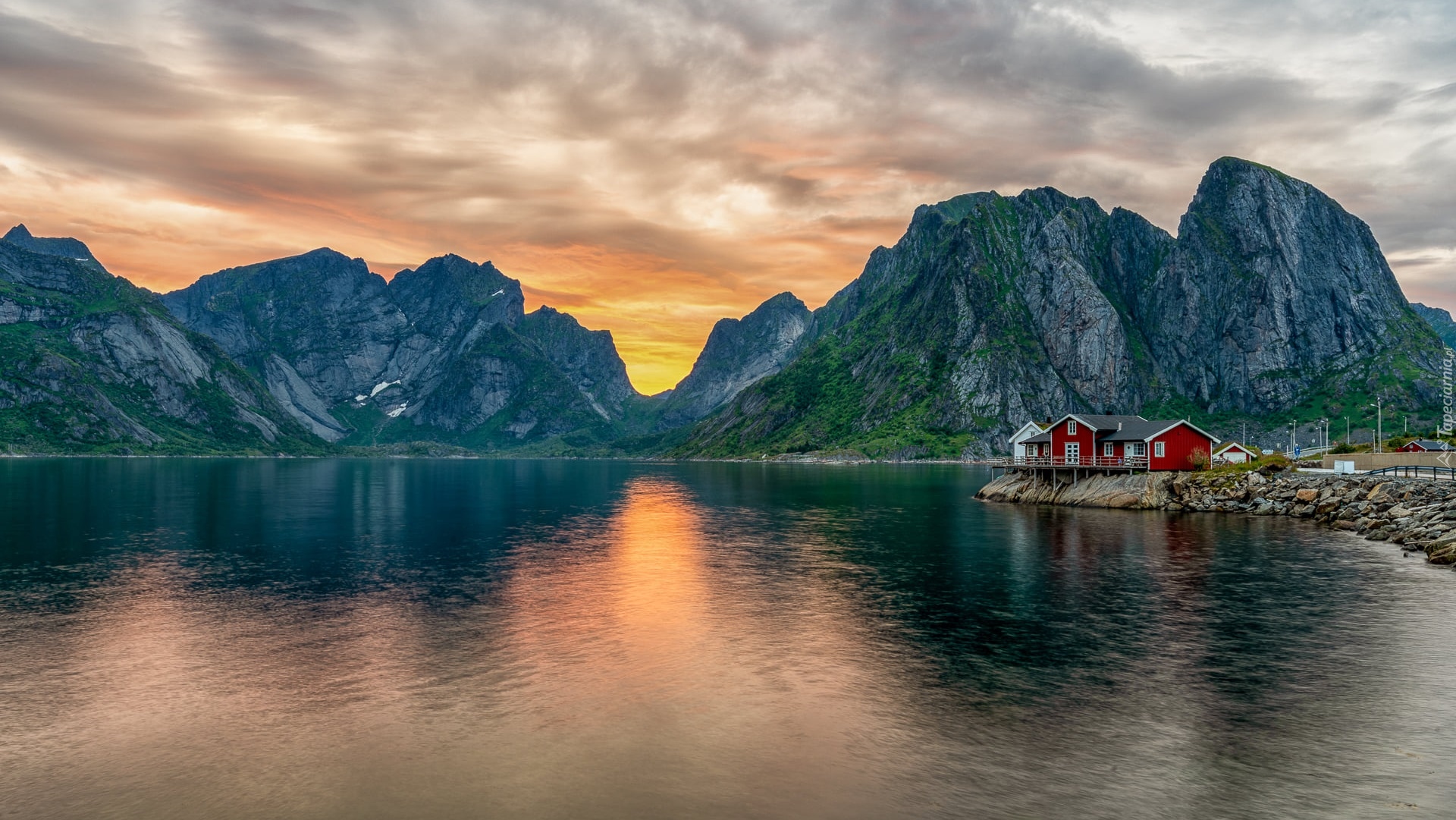 Edytor tapety: Domy na tle gór przy Morzu Norweskim