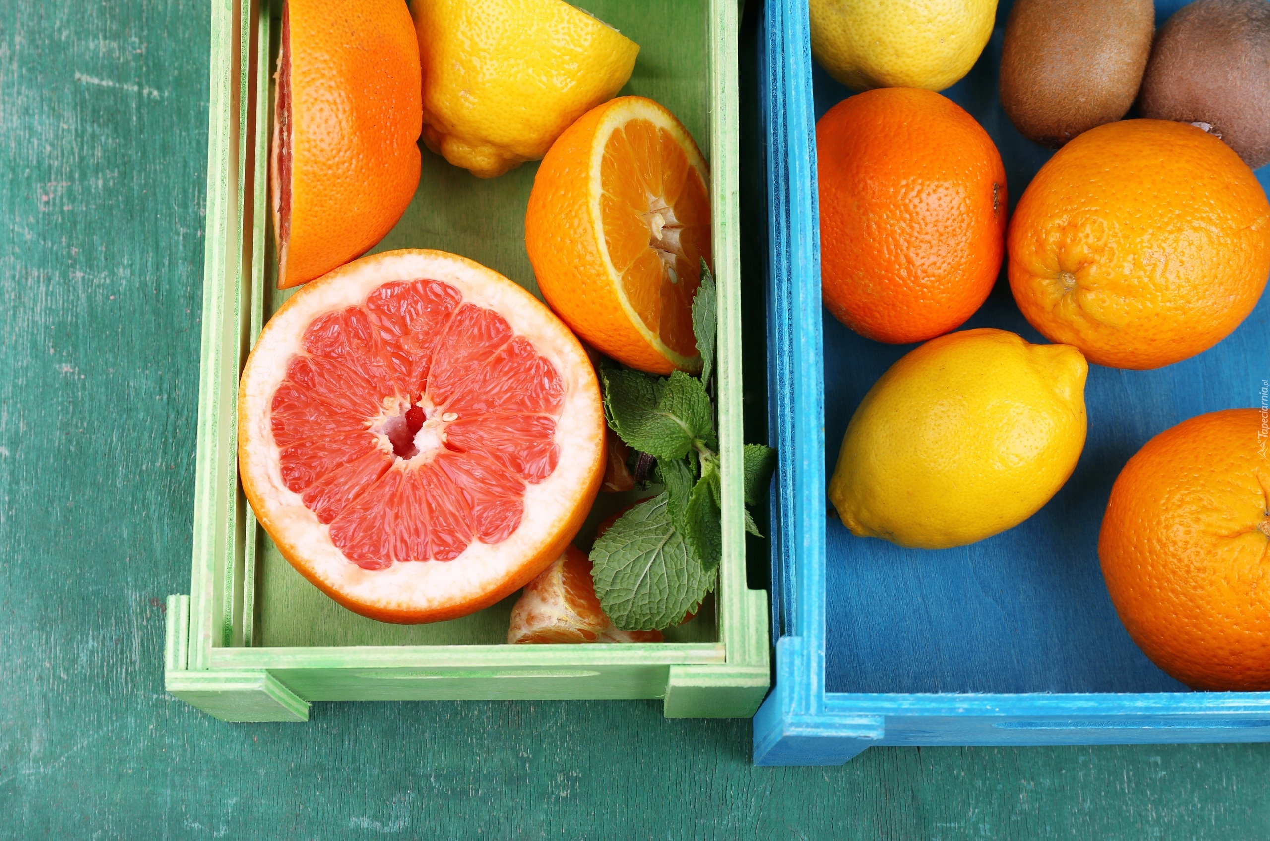 Edytor tapety: Cytrusy w dwóch kolorowych skrzynkach