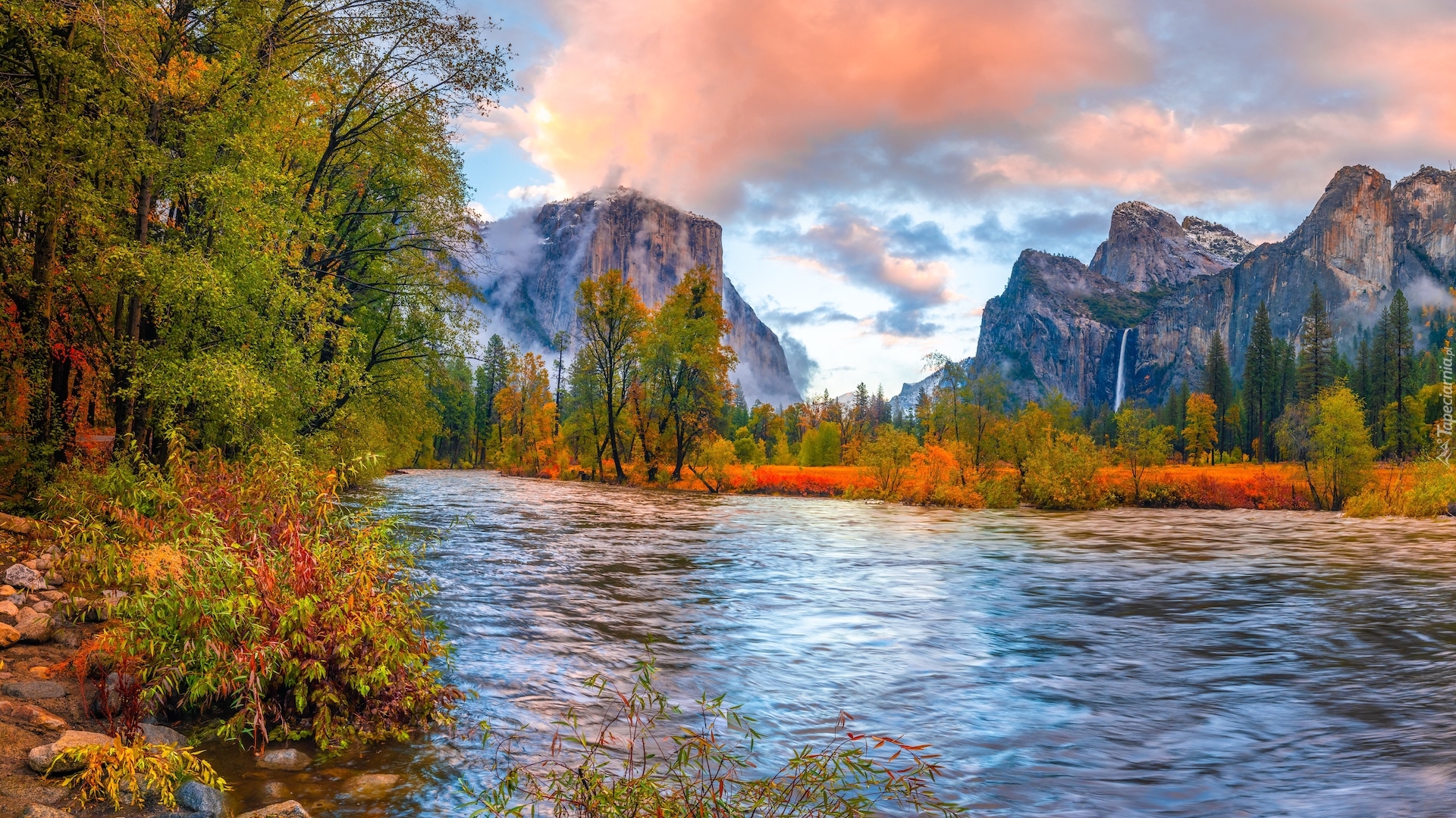 Edytor tapety: Jesienne drzewa nad rzeką Merced River