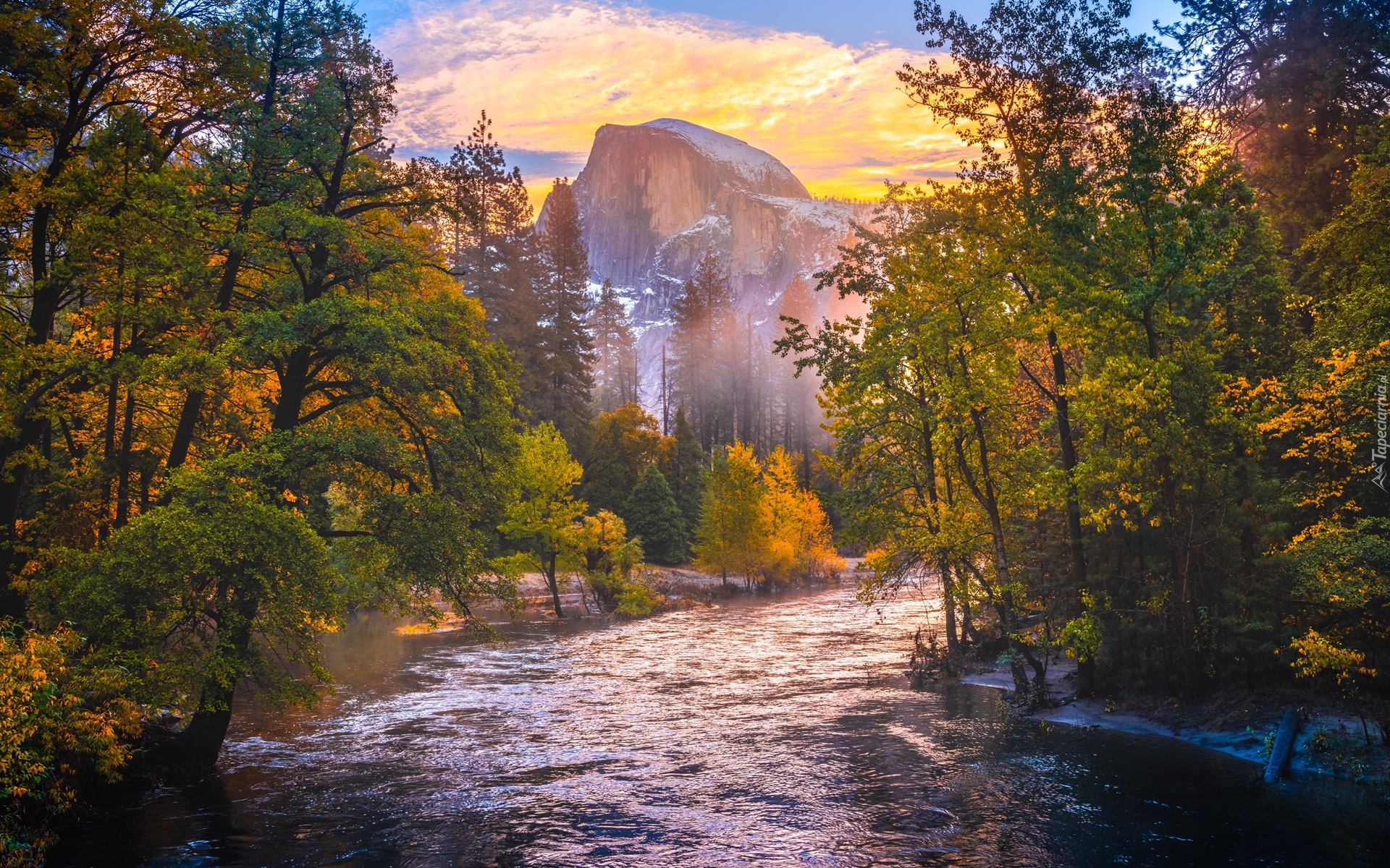 Edytor tapety: Rzeka Merced River na tle szczytu Half Dome
