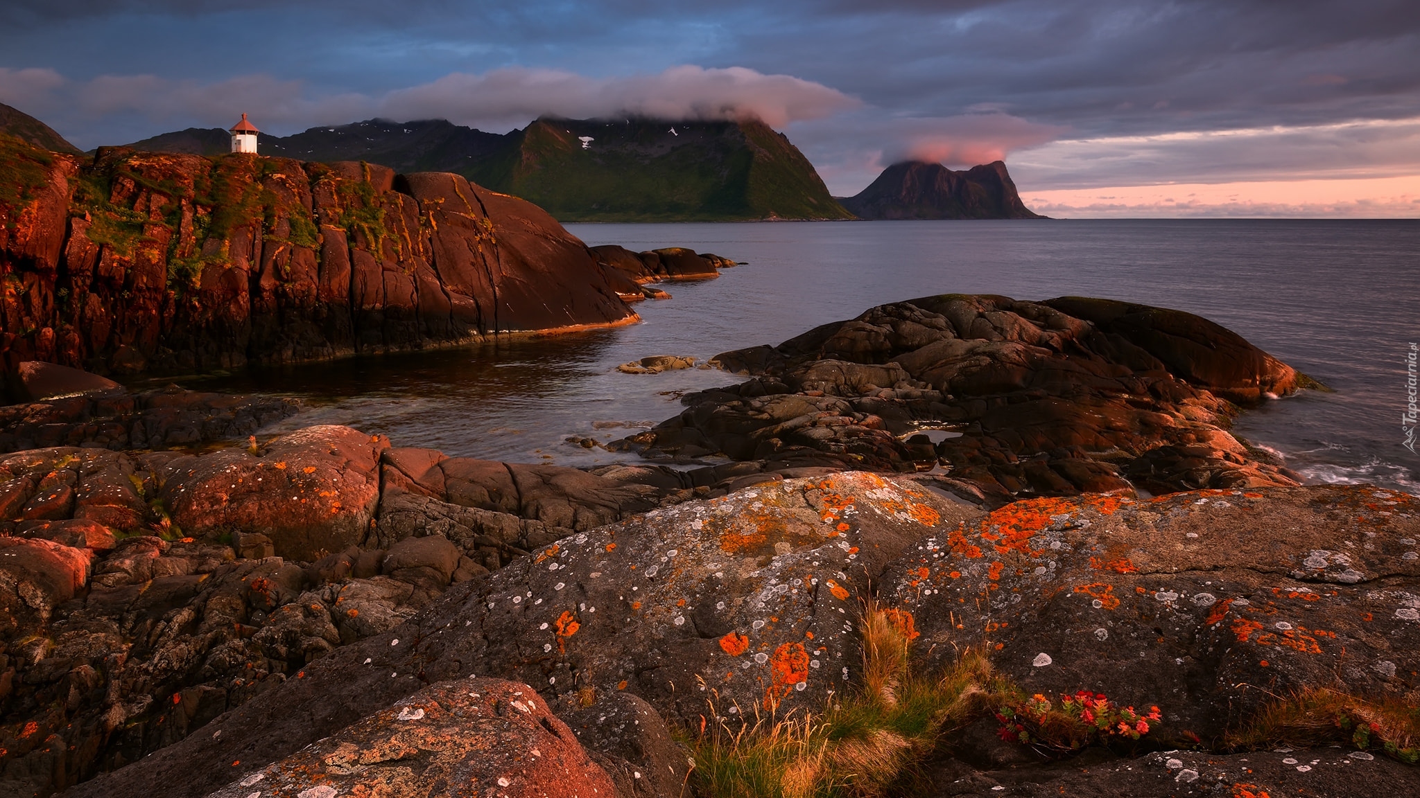 Edytor tapety: Latarnia morska na skale przy brzegu morza