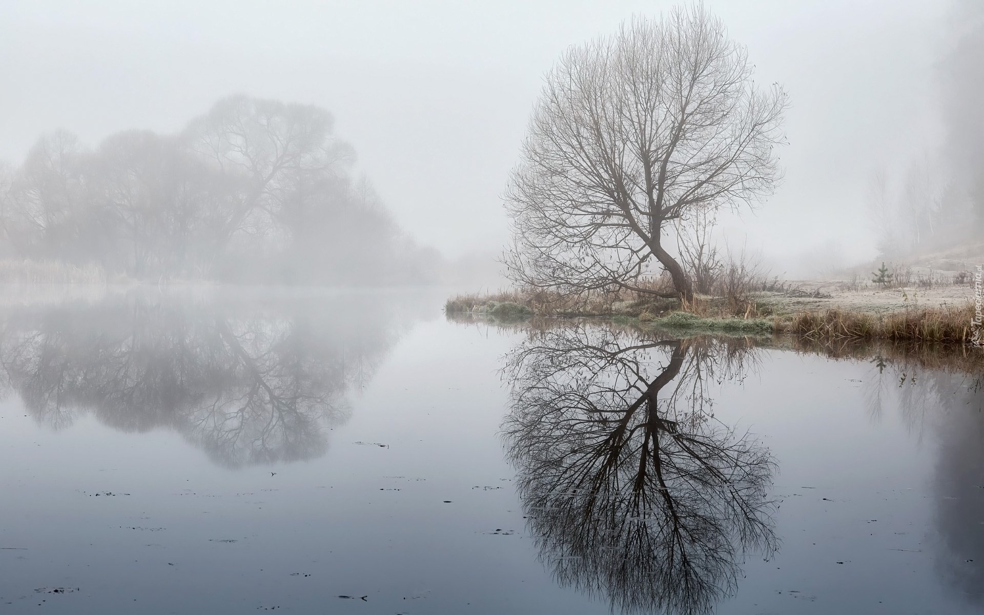 Edytor tapety: Odbicie bezlistnego drzewa w rzece