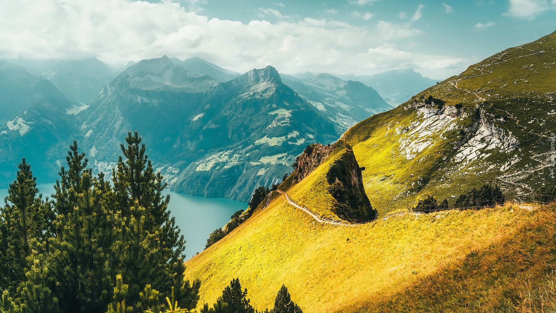 Edytor tapety: Krajobraz górski z jeziorem w tle