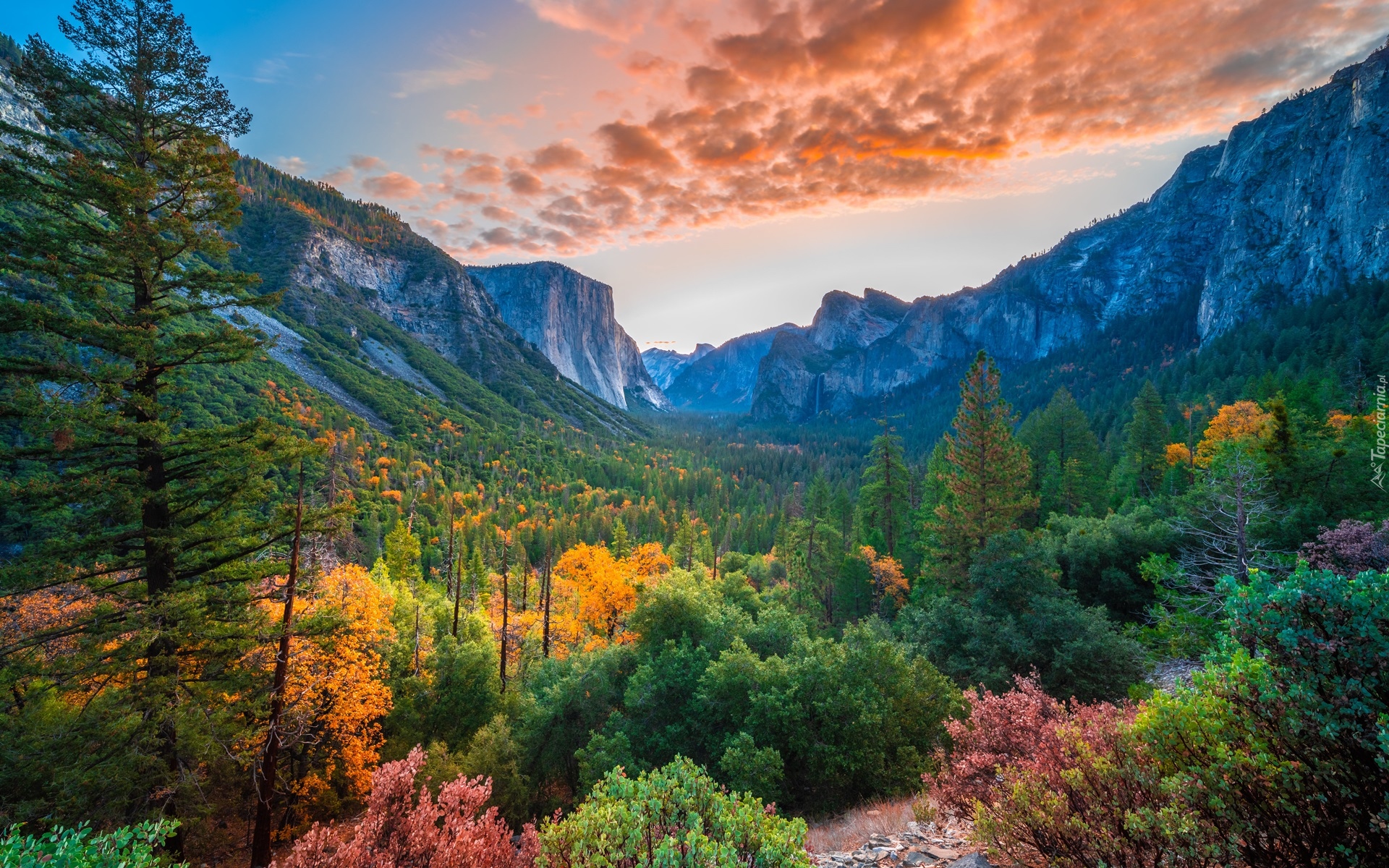 Edytor tapety: Jesienne drzewa w dolinie Yosemite Valley