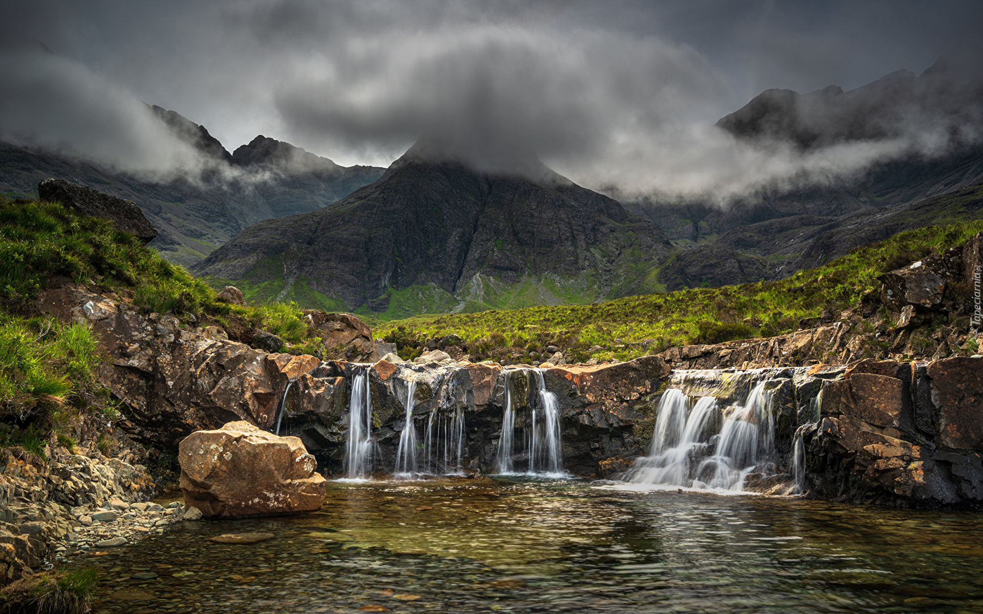 Edytor tapety: Mgła nad szczytami gór na wyspie Skye